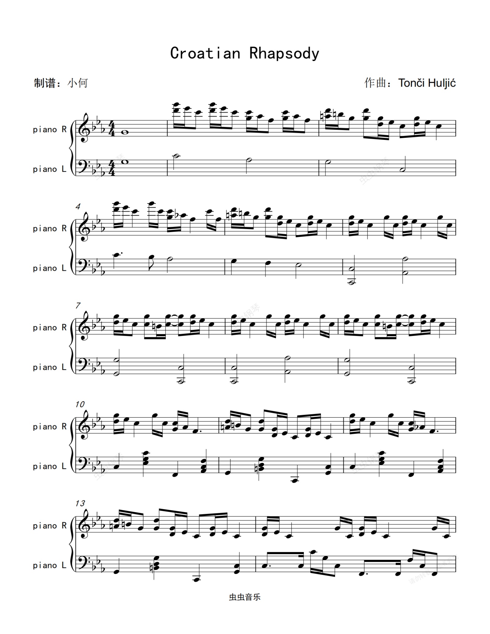 钢琴谱:克罗地亚狂想曲-马克西姆