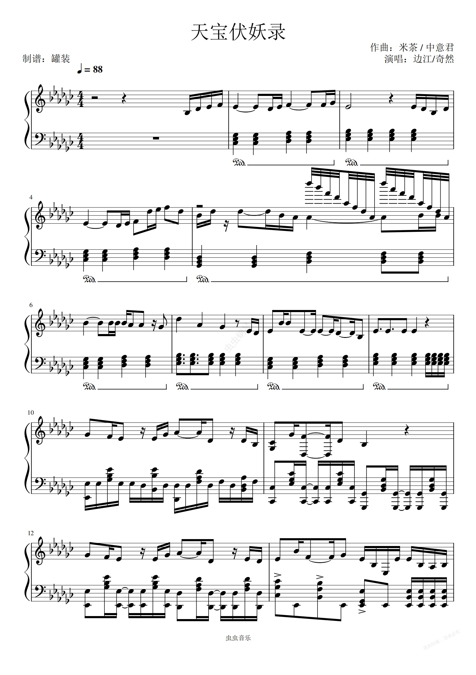 钢琴谱:天宝伏妖录(广播剧《天宝伏妖录》ed)
