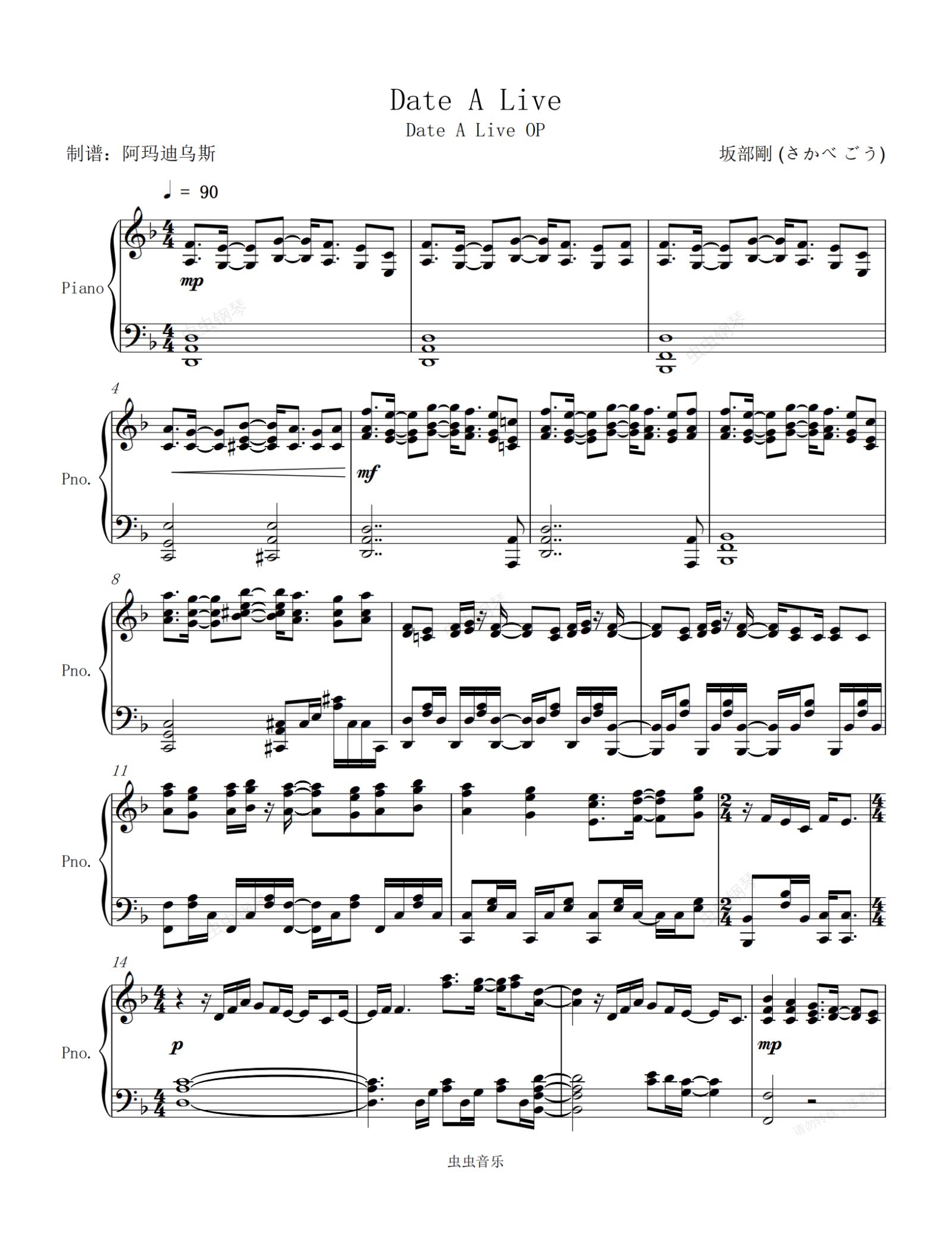 钢琴谱:约会大作战 OP < Date A Live > 原调高还原完整版本