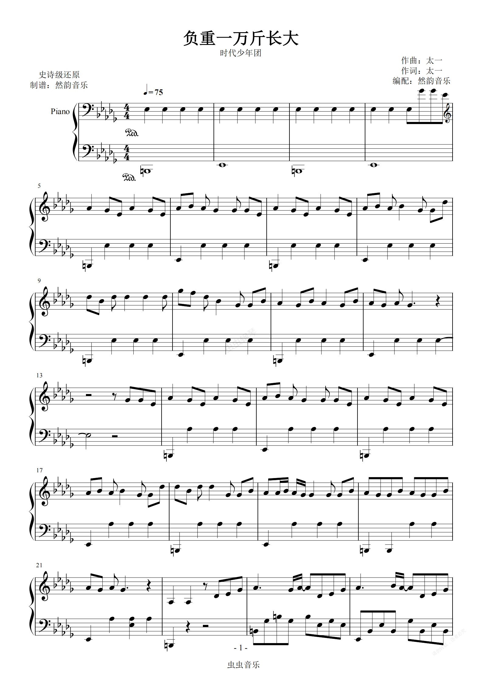 钢琴谱:负重一万斤长大-TNT时代少年团公演 钢琴史诗级还原【然韵音乐编配】