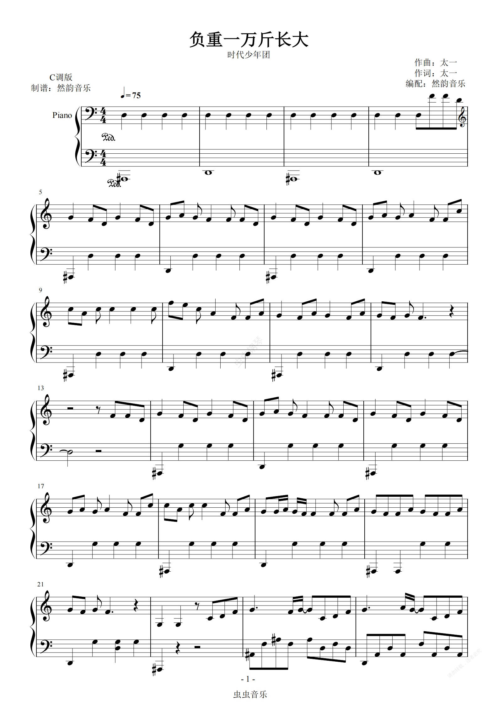 钢琴谱:【C调】负重一万斤长大-TNT时代少年团 钢琴史诗级还原【然韵音乐】