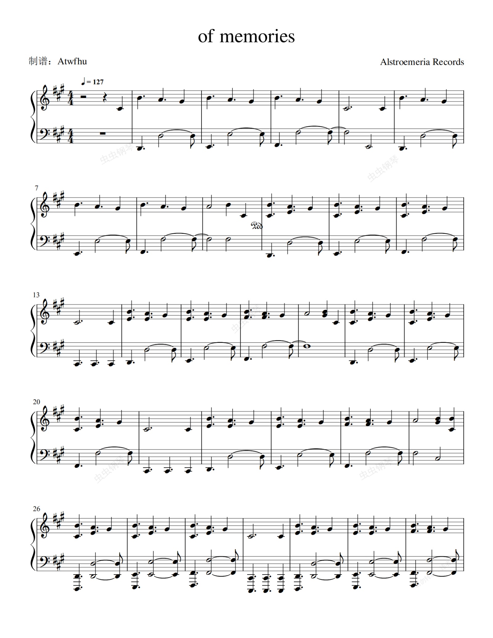 钢琴谱:【东方project】of memories -Alstroemeria Records