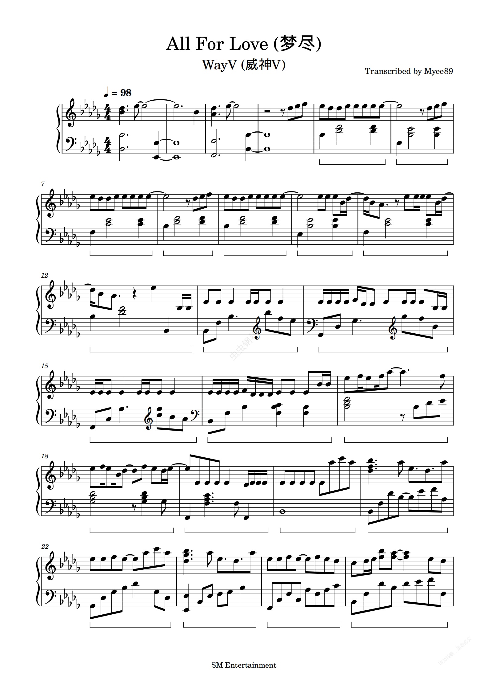 钢琴谱:威神V - 梦尽 (All For Love) 钢琴谱