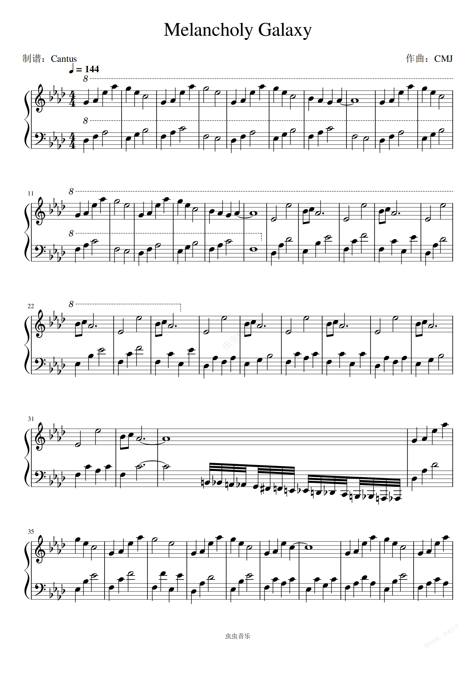 钢琴谱:Melancholy Galaxy/忧郁的银河-CMJ