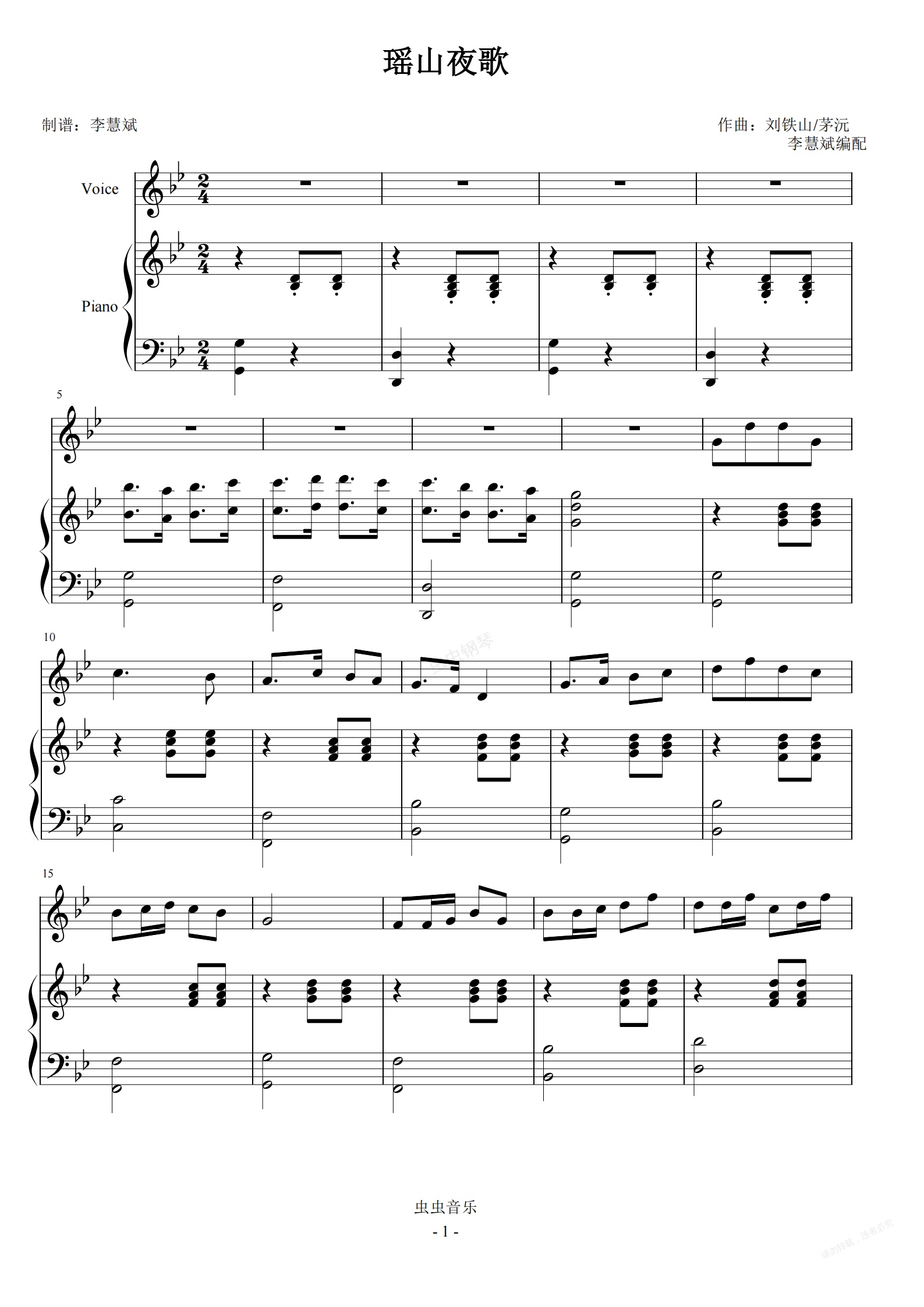 钢琴谱:瑶山夜歌