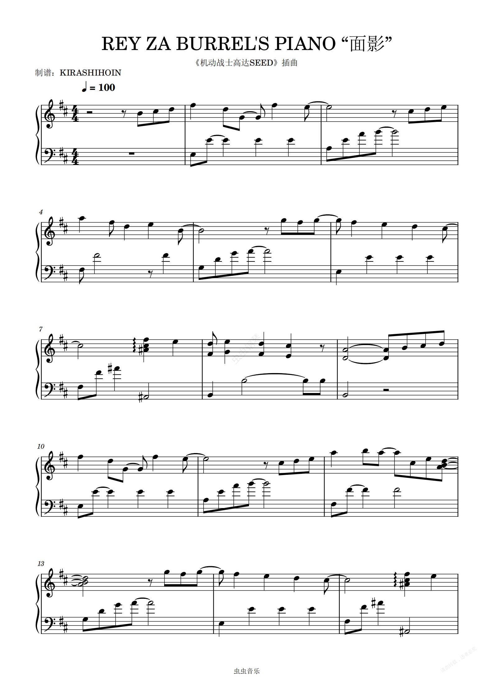 钢琴谱:REY ZA BURREL'S PIANO “面影”(《机动战士高达SEED》插曲)