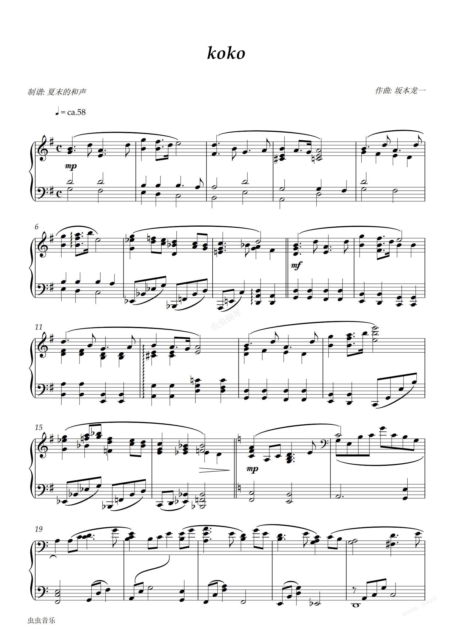 钢琴谱:坂本龙一 - Koko