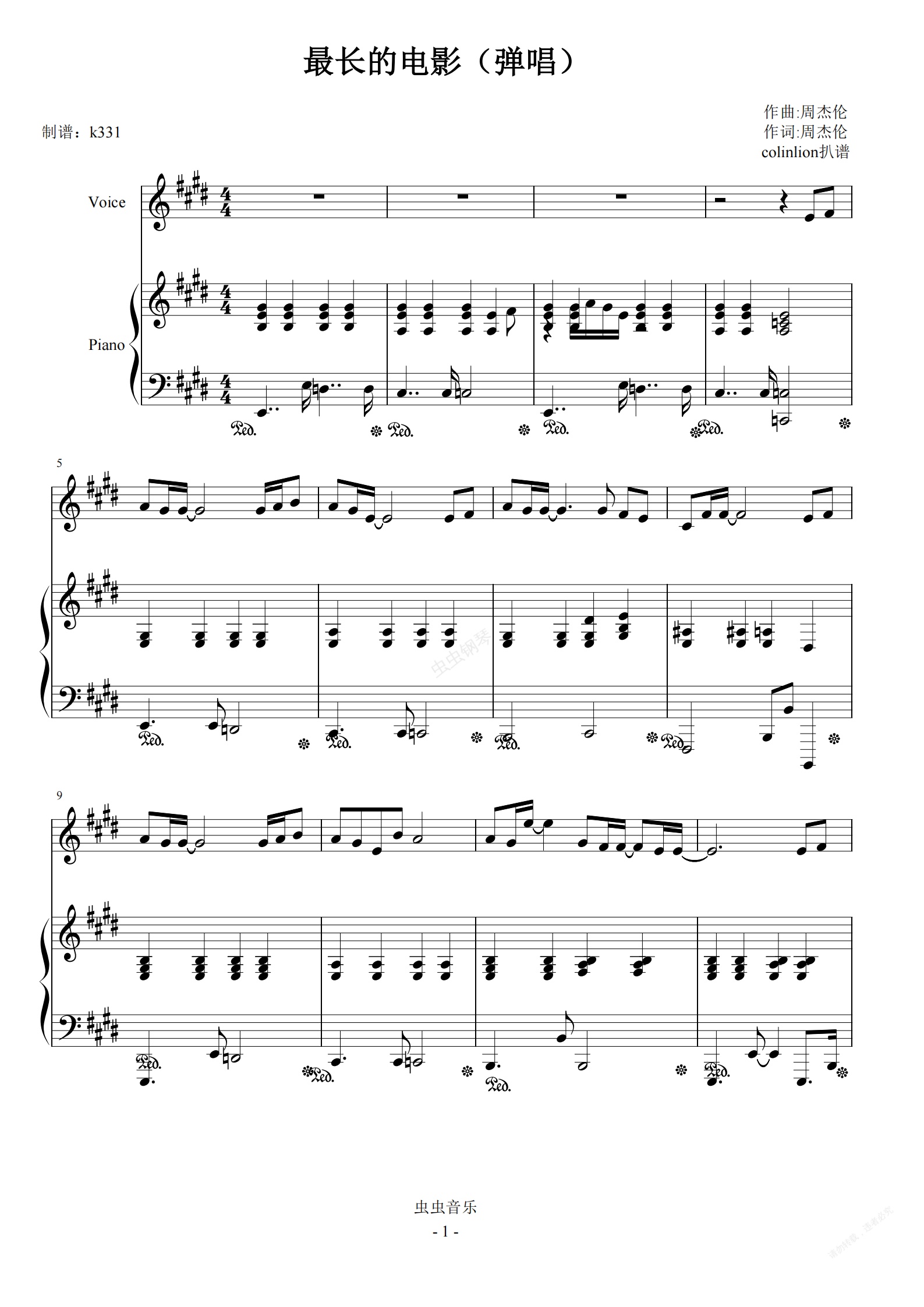 钢琴谱:最长的电影(弹唱)-周杰伦