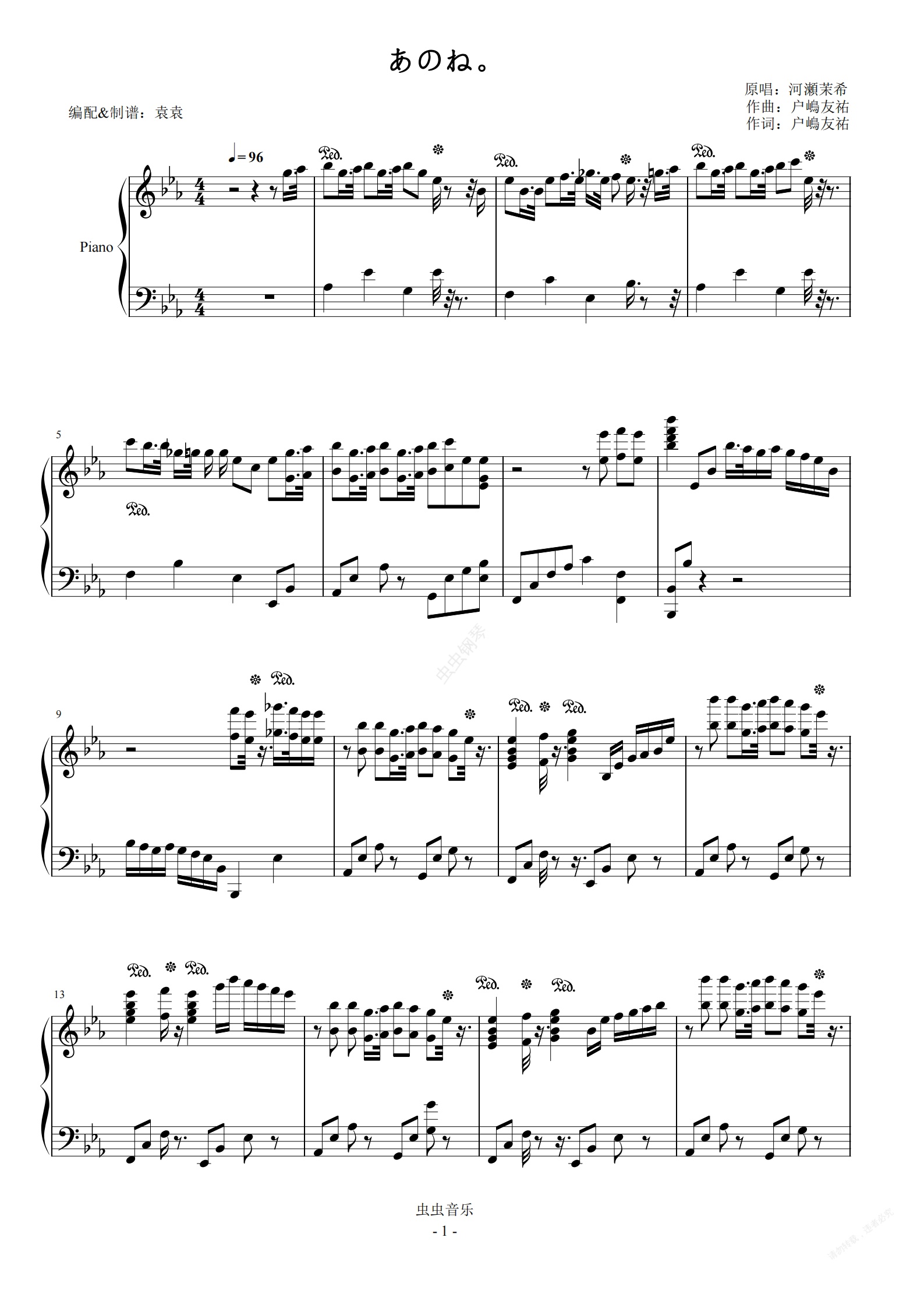 钢琴谱:熊熊勇闯异世界(片尾EDあのね)