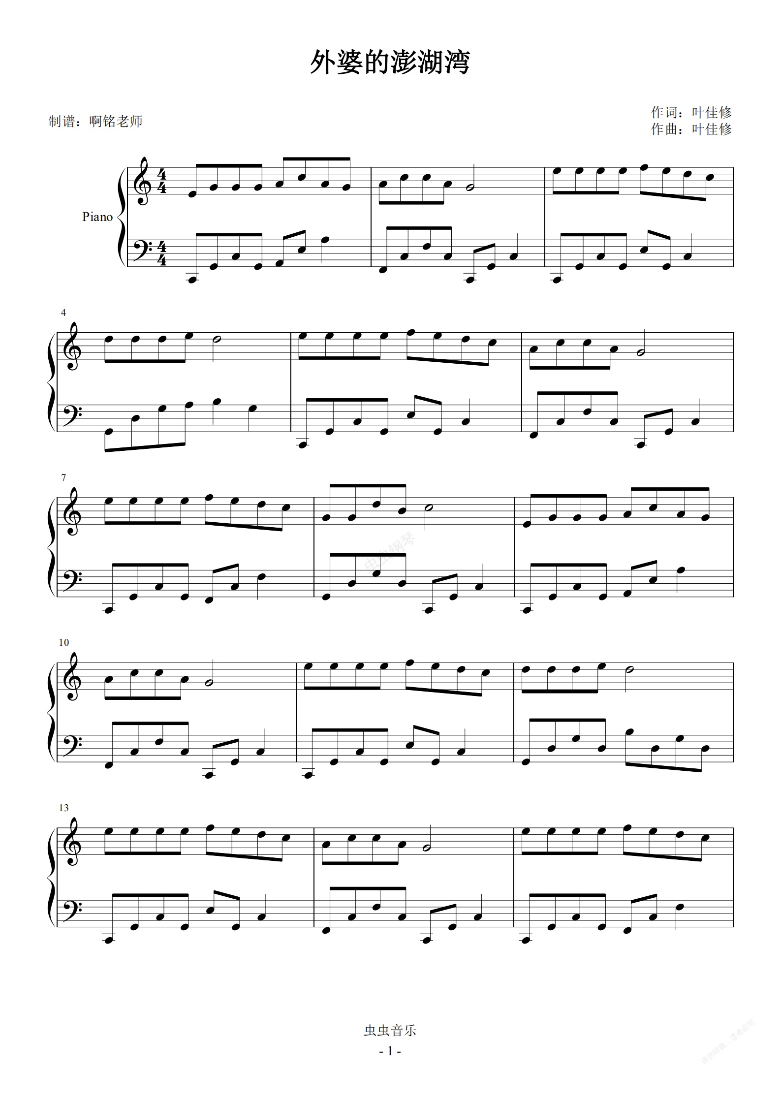 钢琴谱:外婆的澎湖湾 怀旧经典