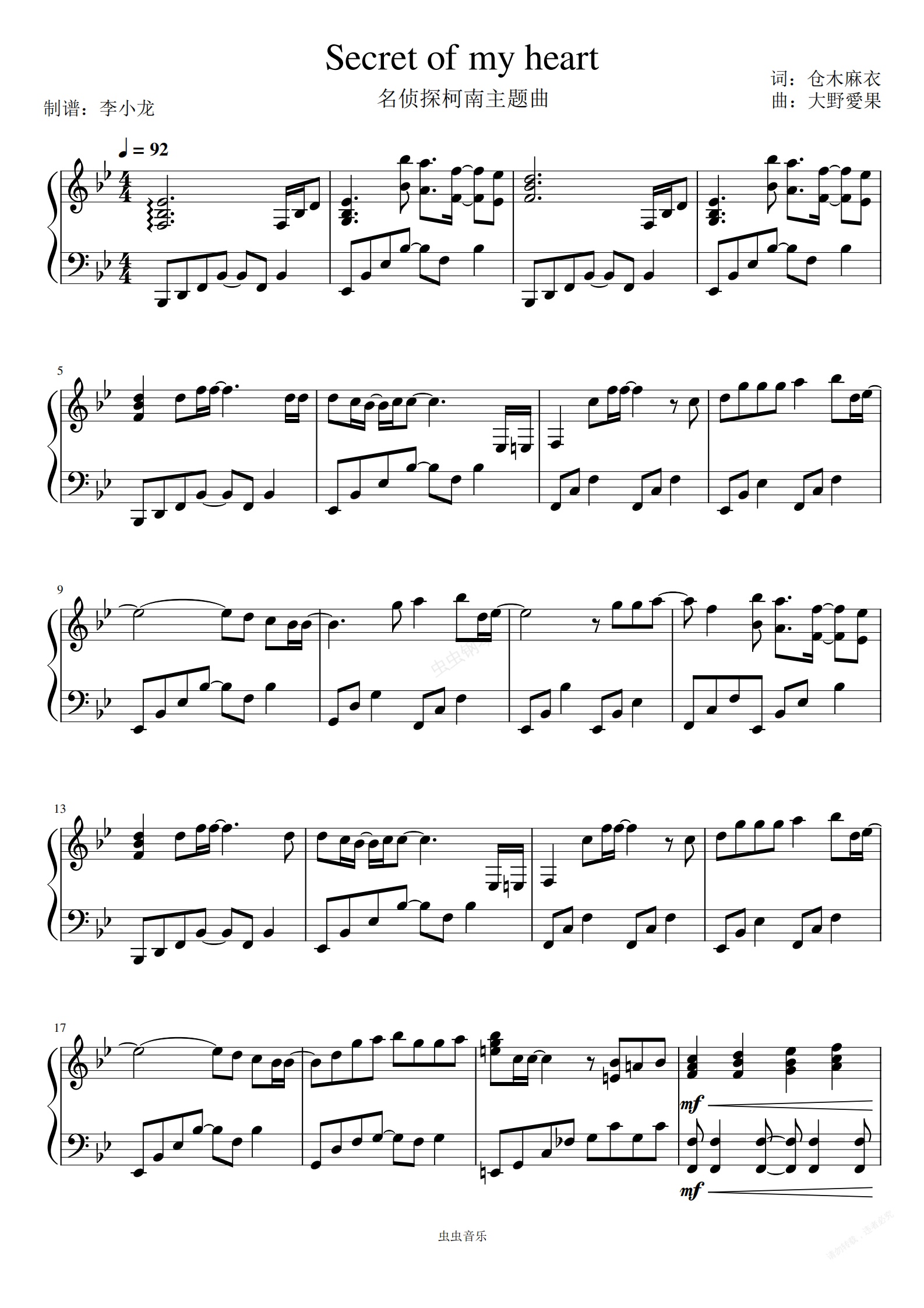 钢琴谱:名侦探柯南主题曲-《Secret of my heart》
