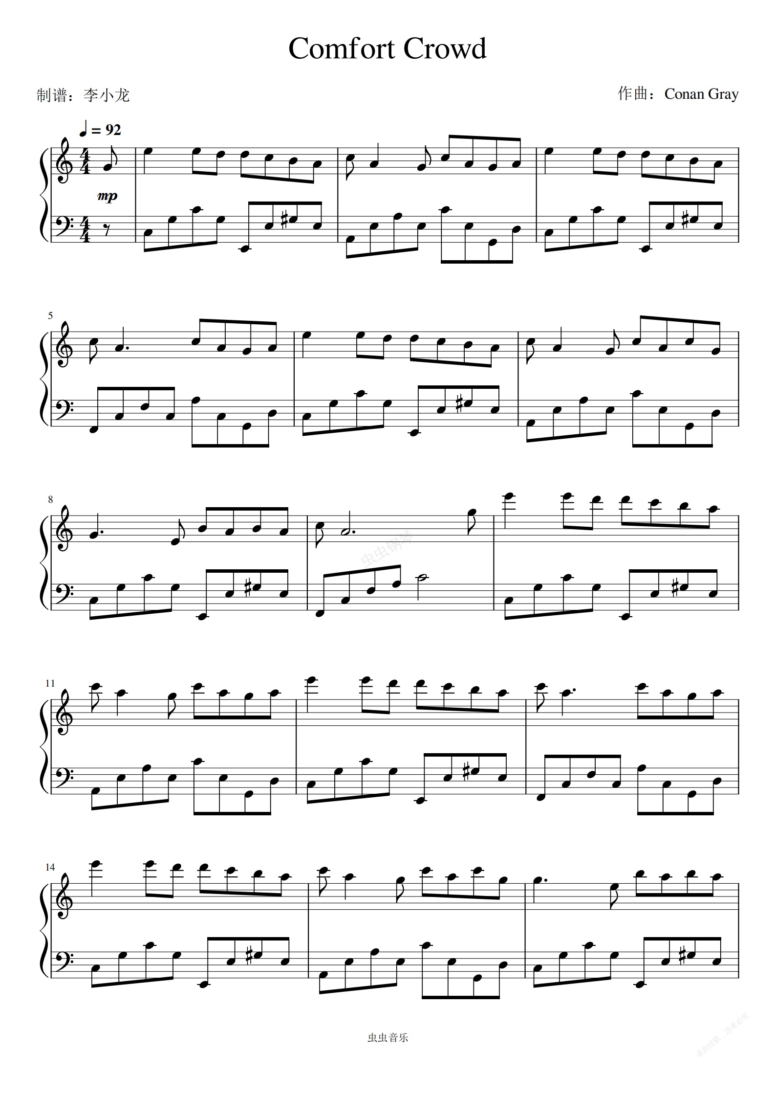 钢琴谱:《Comfort Crowd》-Conan Gray