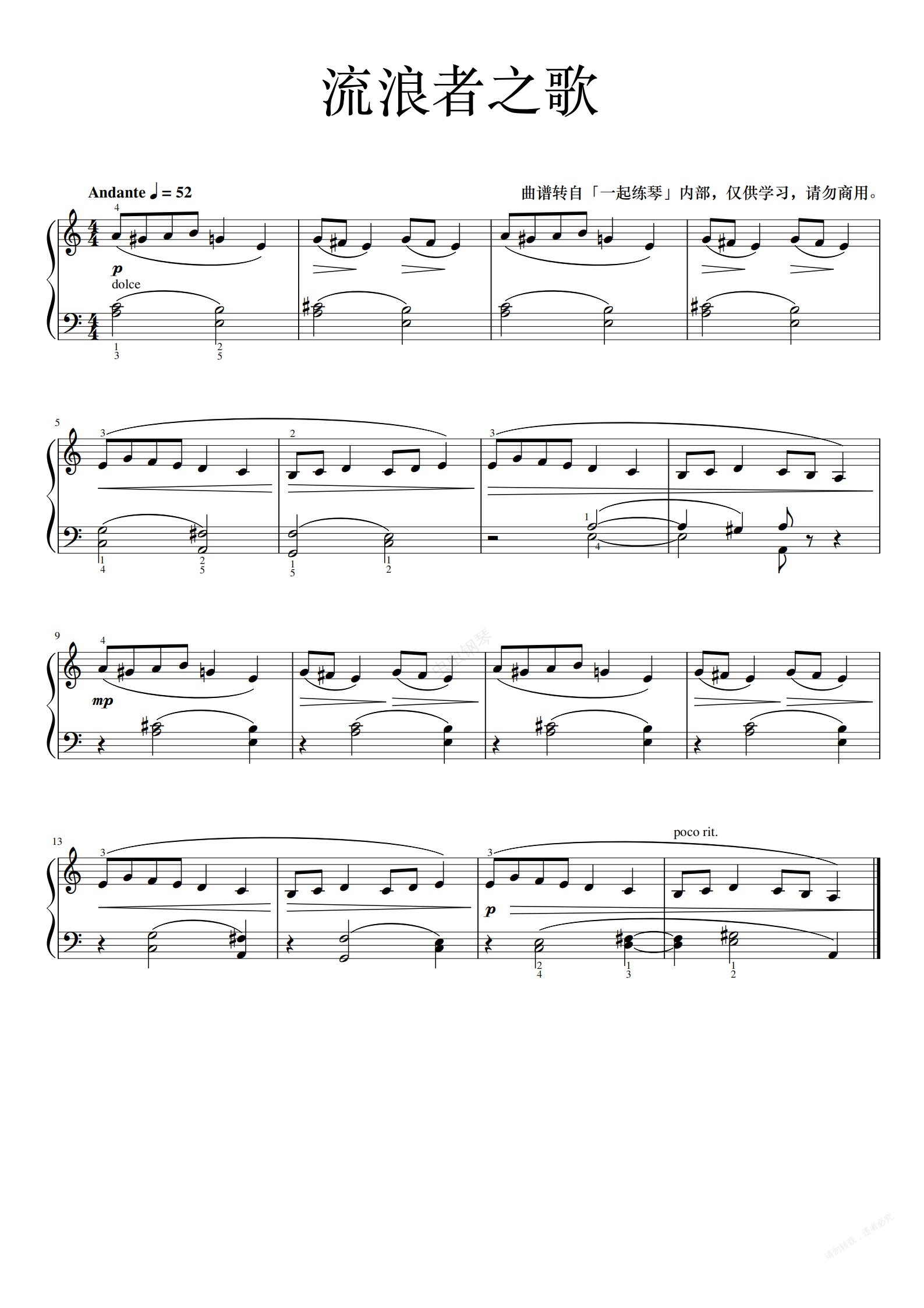 钢琴谱:流浪者之歌