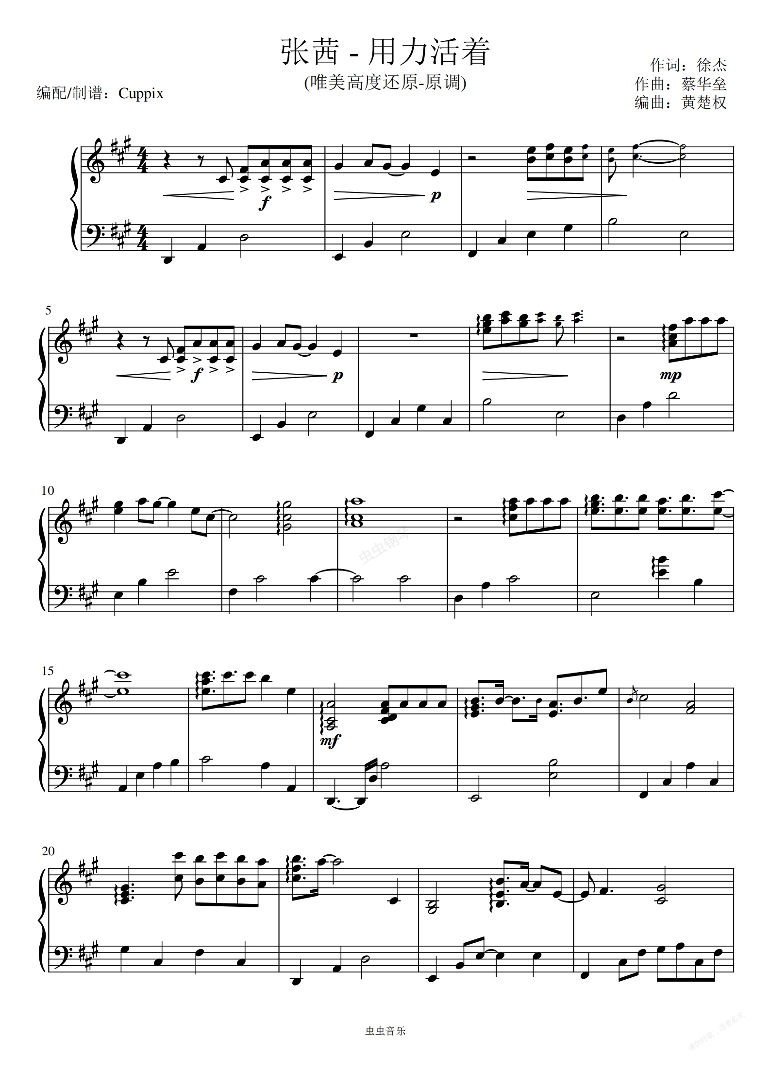 钢琴谱:张茜《用力活着》Cuppix改编-原调-唯美高度还原
