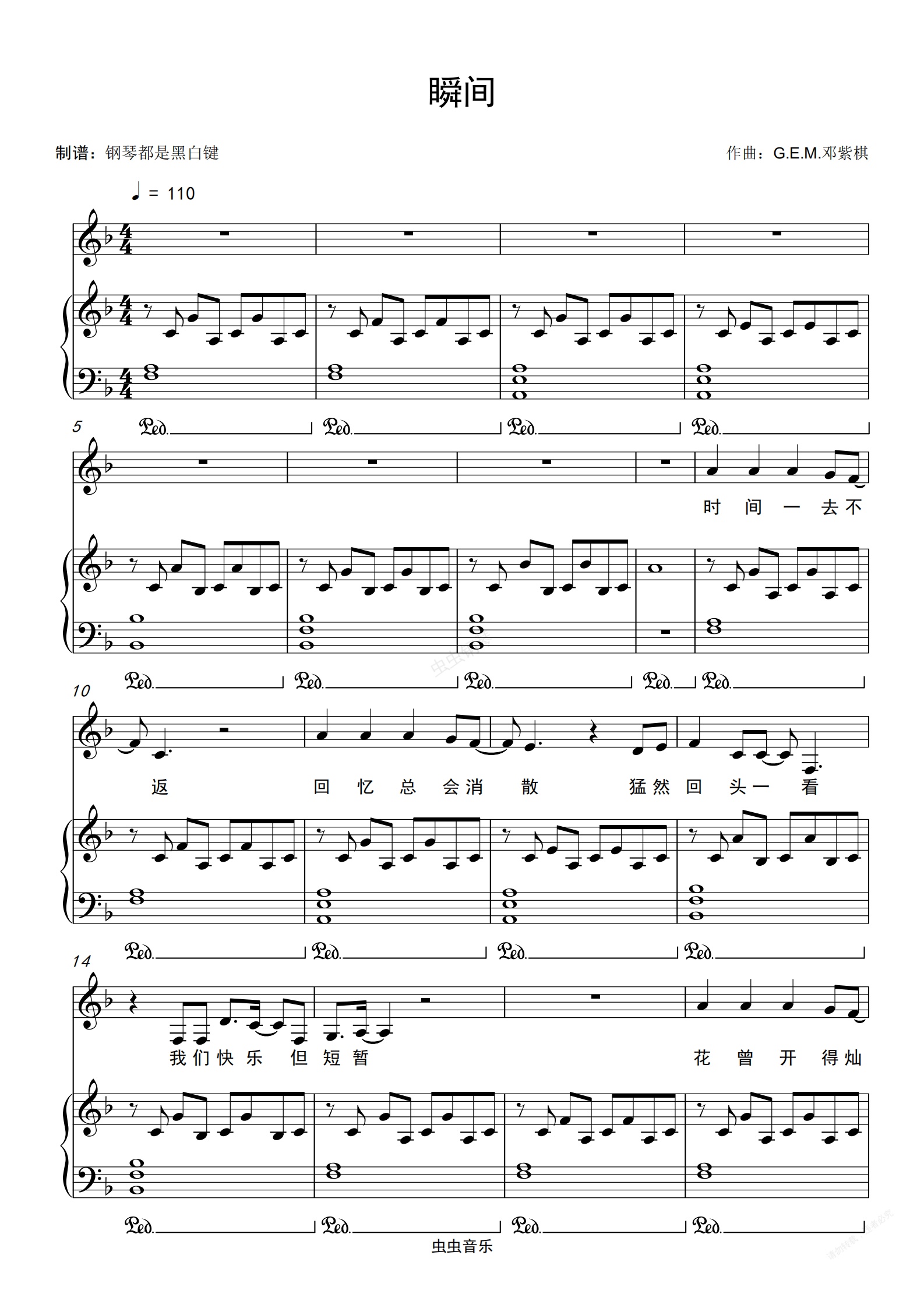 钢琴谱:瞬间-G.E.M.邓紫棋 扒谱完美还原原曲附歌词