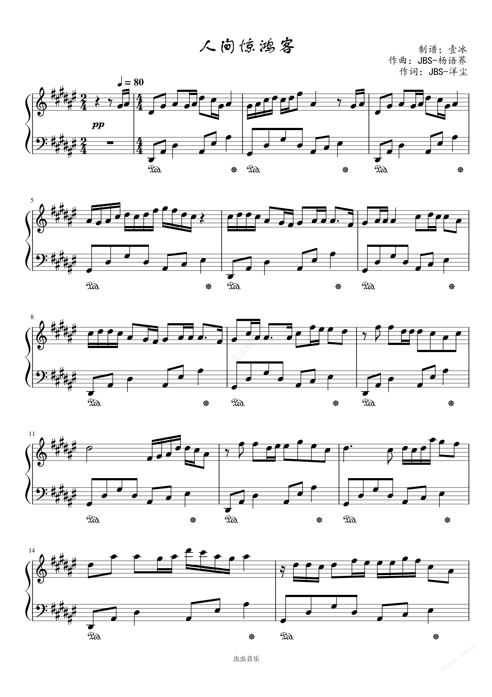 钢琴谱:人间惊鸿客-原调版