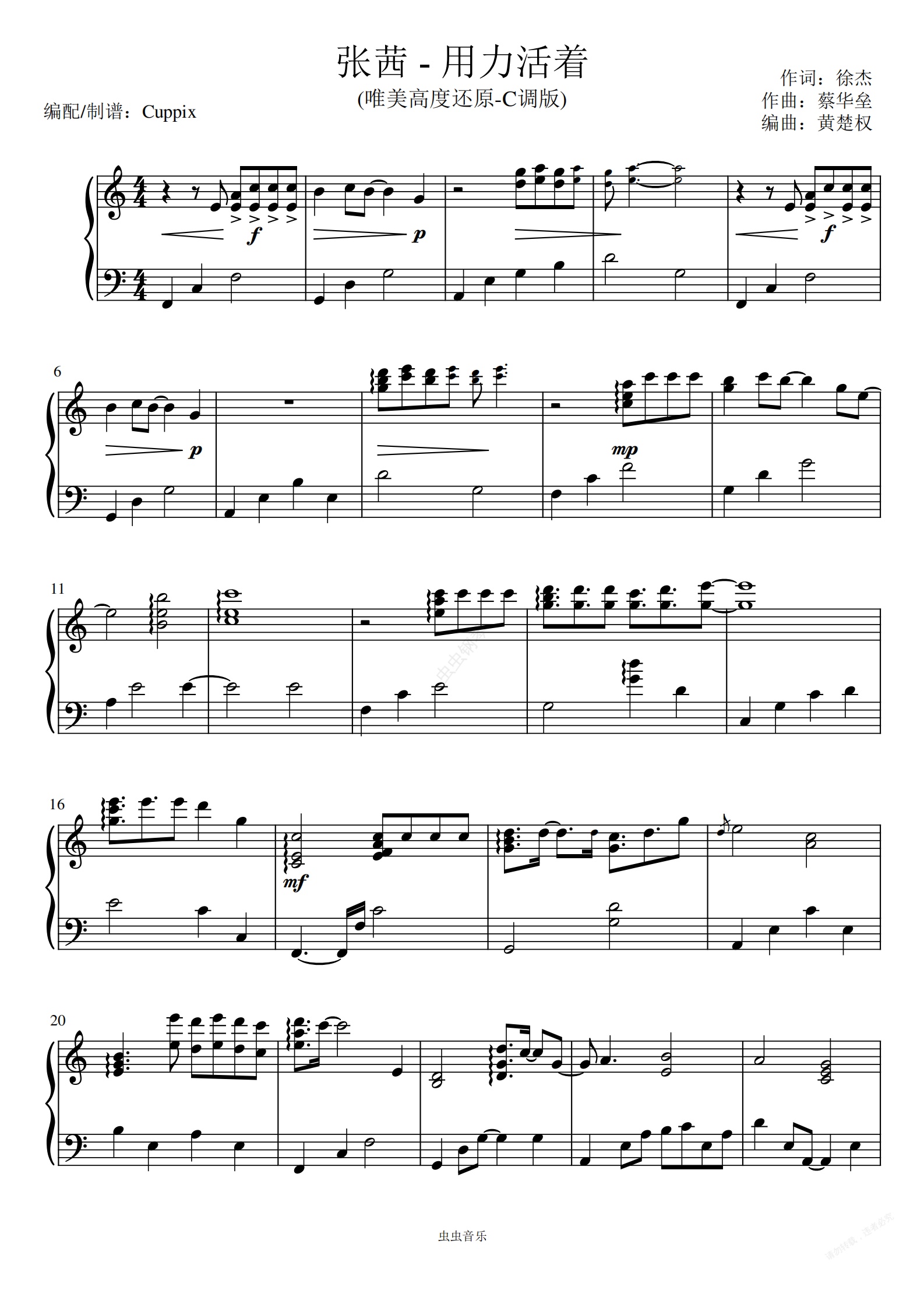 张茜《用力活着》Cuppix改编-C调版-唯美高度还原