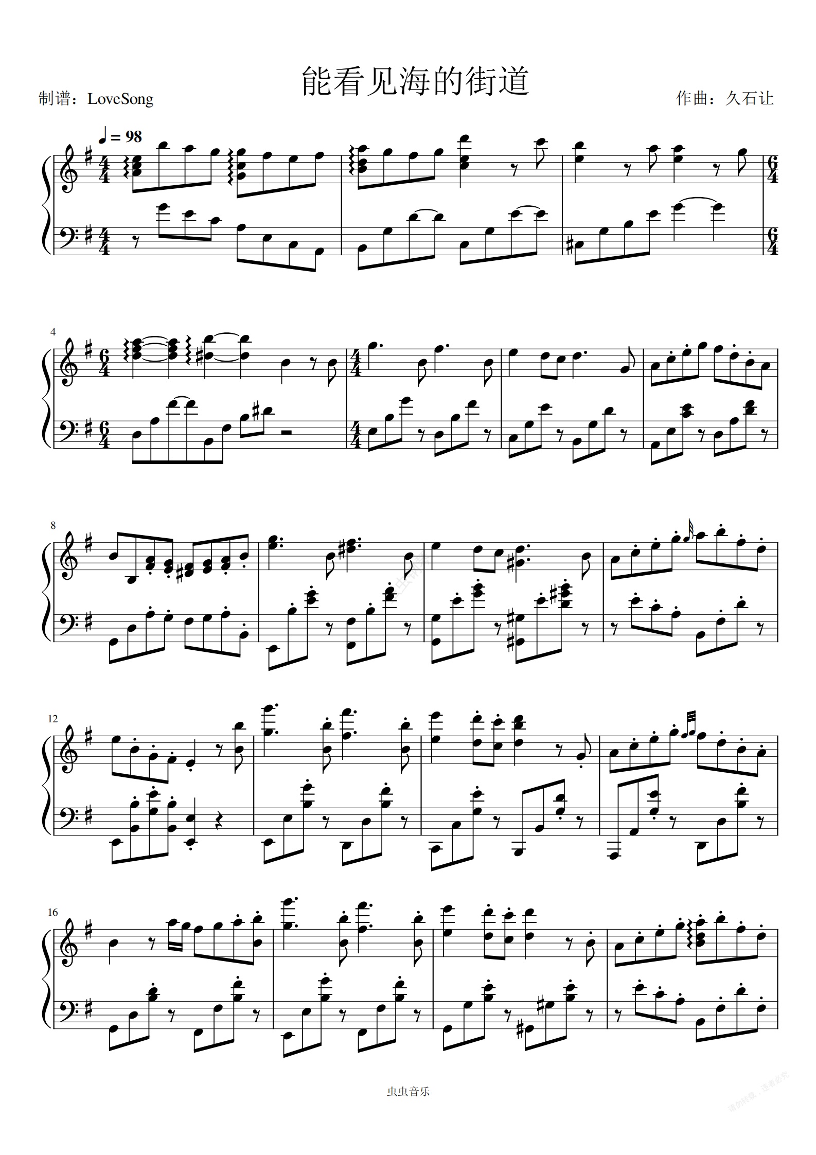 钢琴谱:久石让 能看见海的街道 魔女宅急便插曲