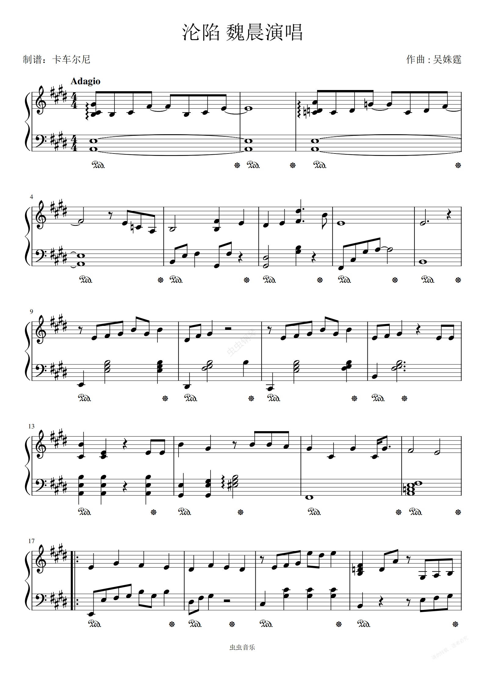 钢琴谱:《原来我很爱你》片尾曲 《沦陷》魏晨演唱