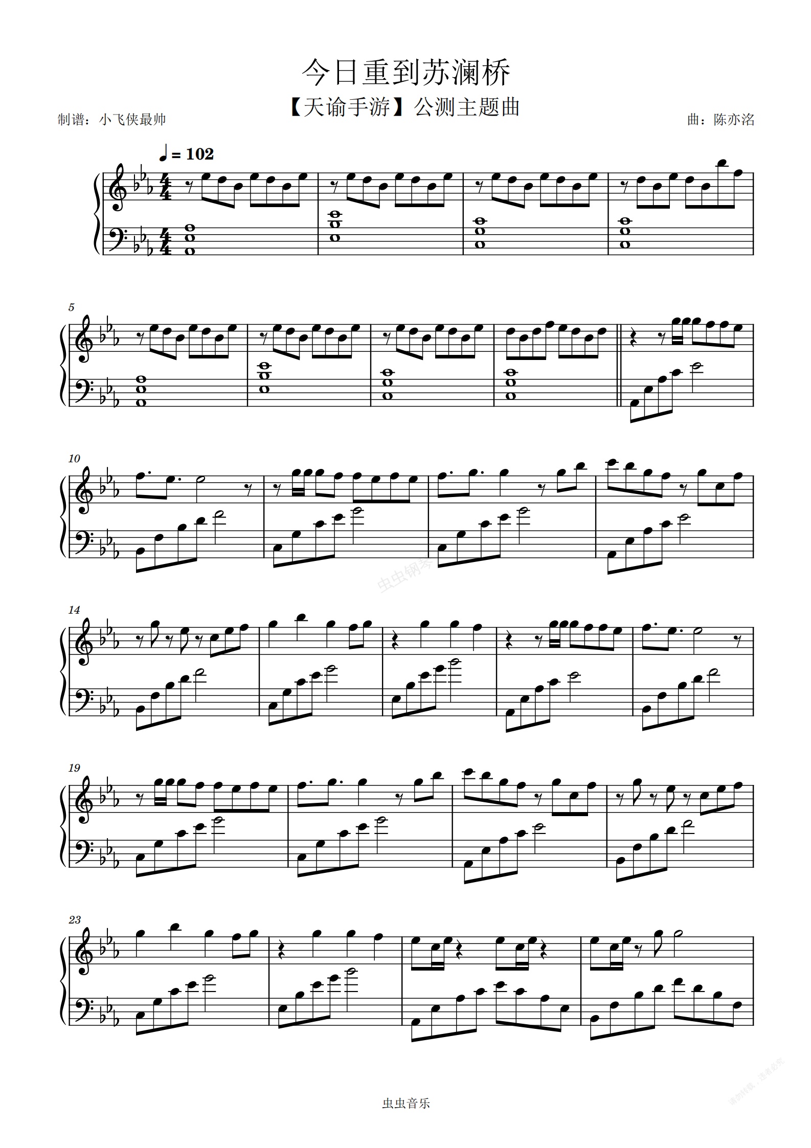 钢琴谱:今日重到苏澜桥~【天谕手游】公测主题曲