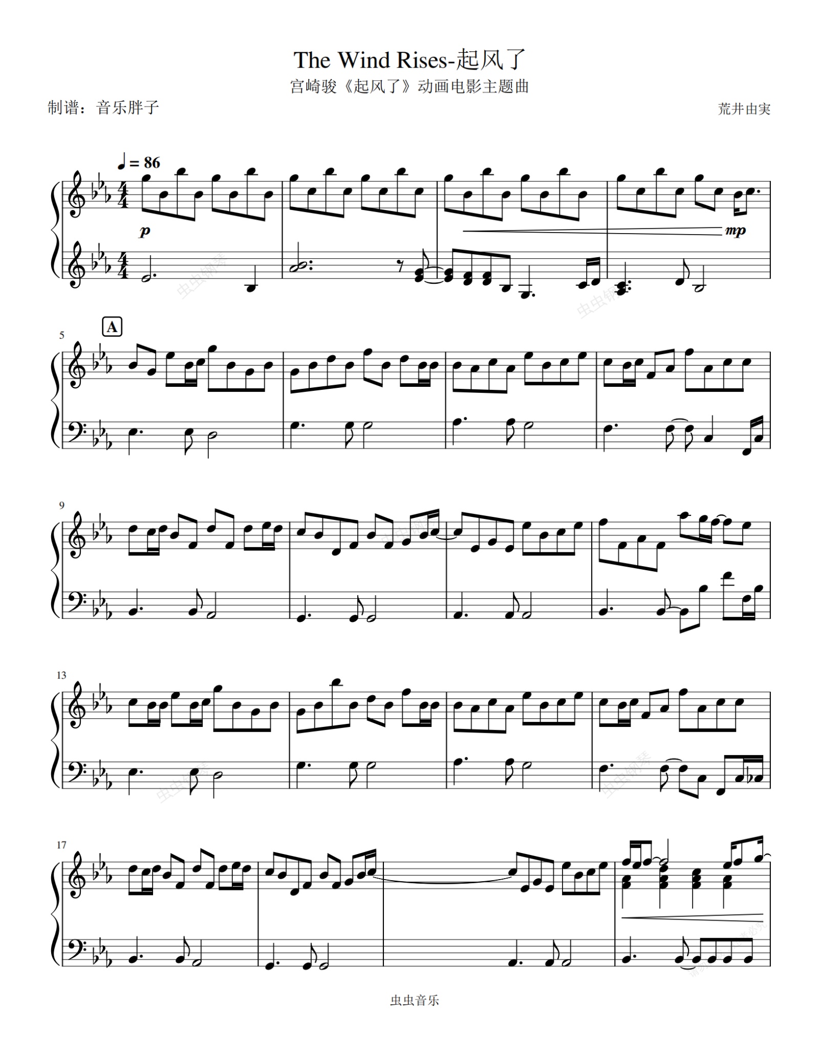 钢琴谱:《起风了》The Wind Rises-宫崎骏《起风了》动画电影主题曲