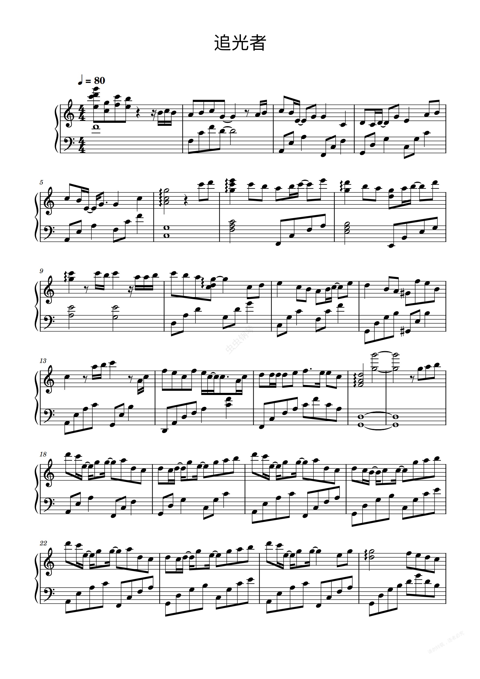 钢琴谱:追光者 初学者简易C大调 即兴伴奏编配版
