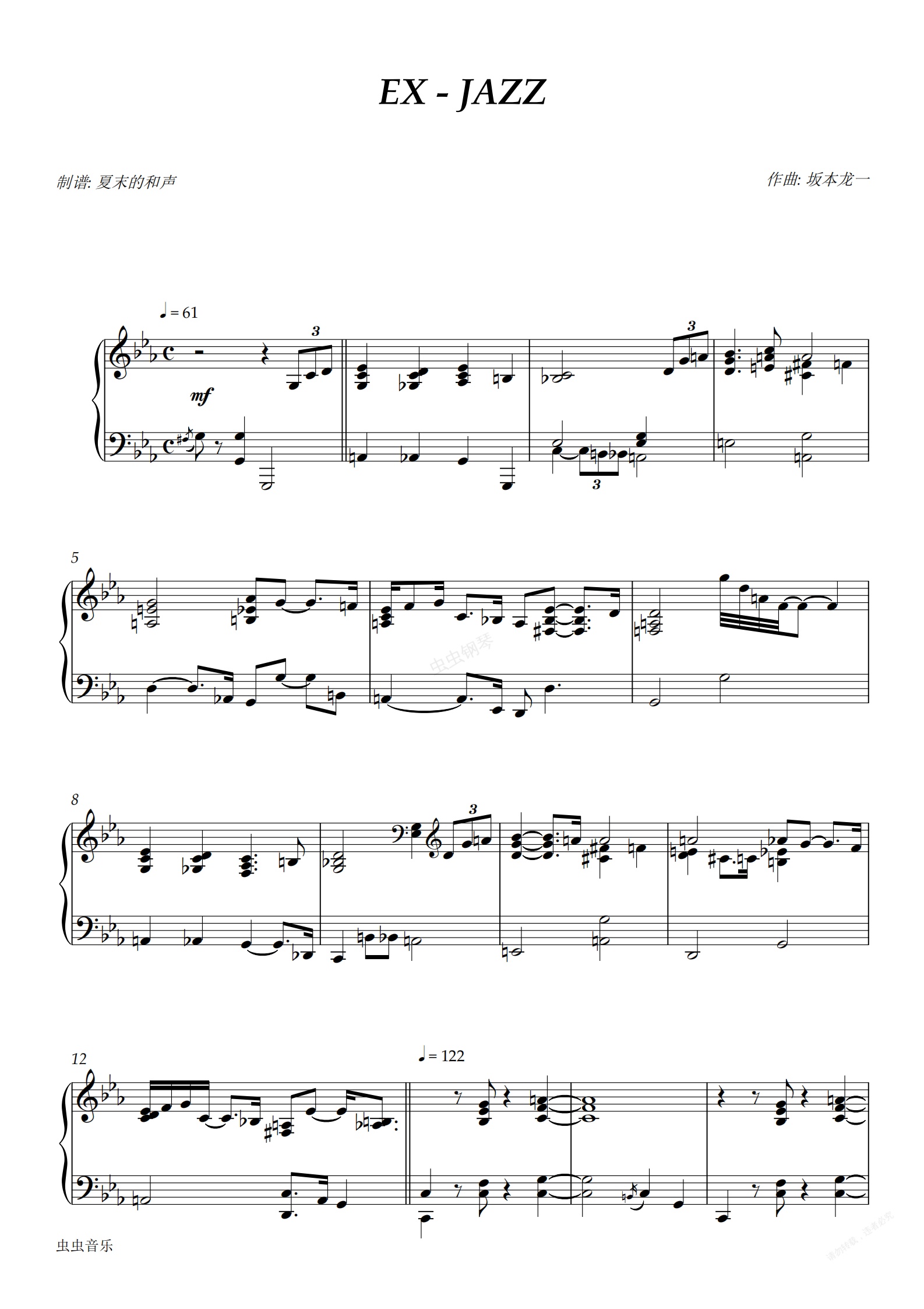 钢琴谱:坂本龙一 - EX-JAZZ