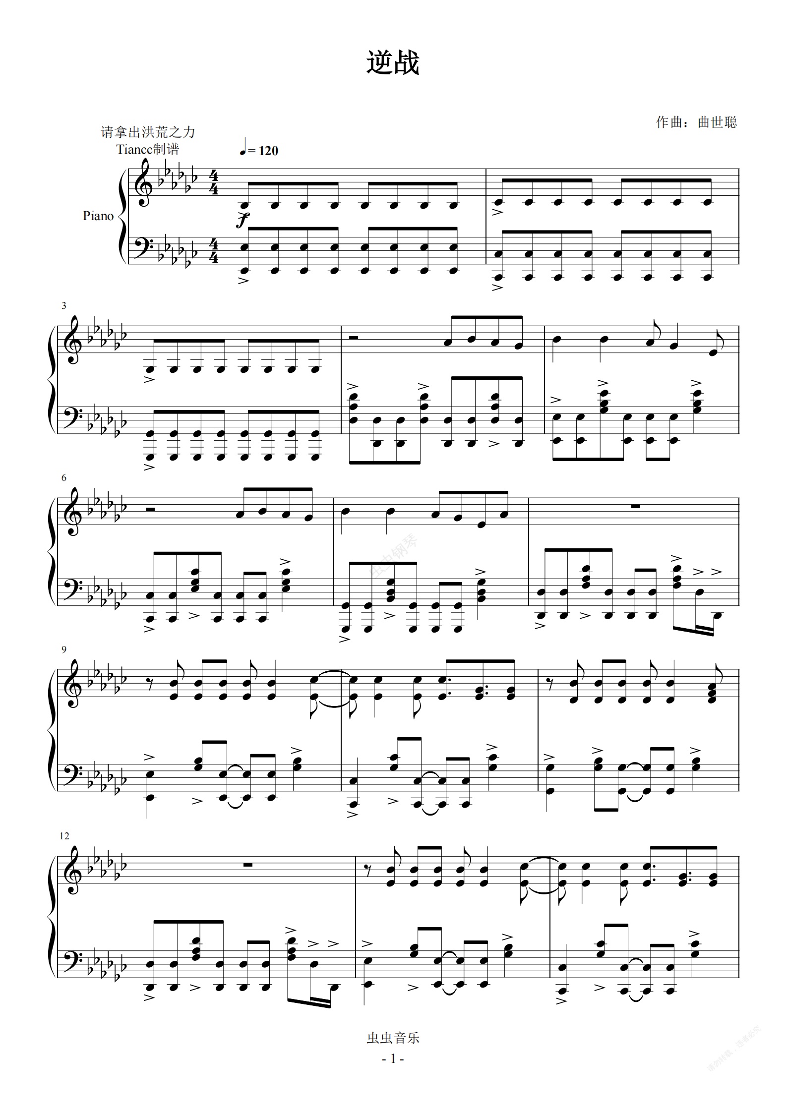 钢琴谱:《逆战》张杰,又拿钢琴当架子鼓玩?740难度