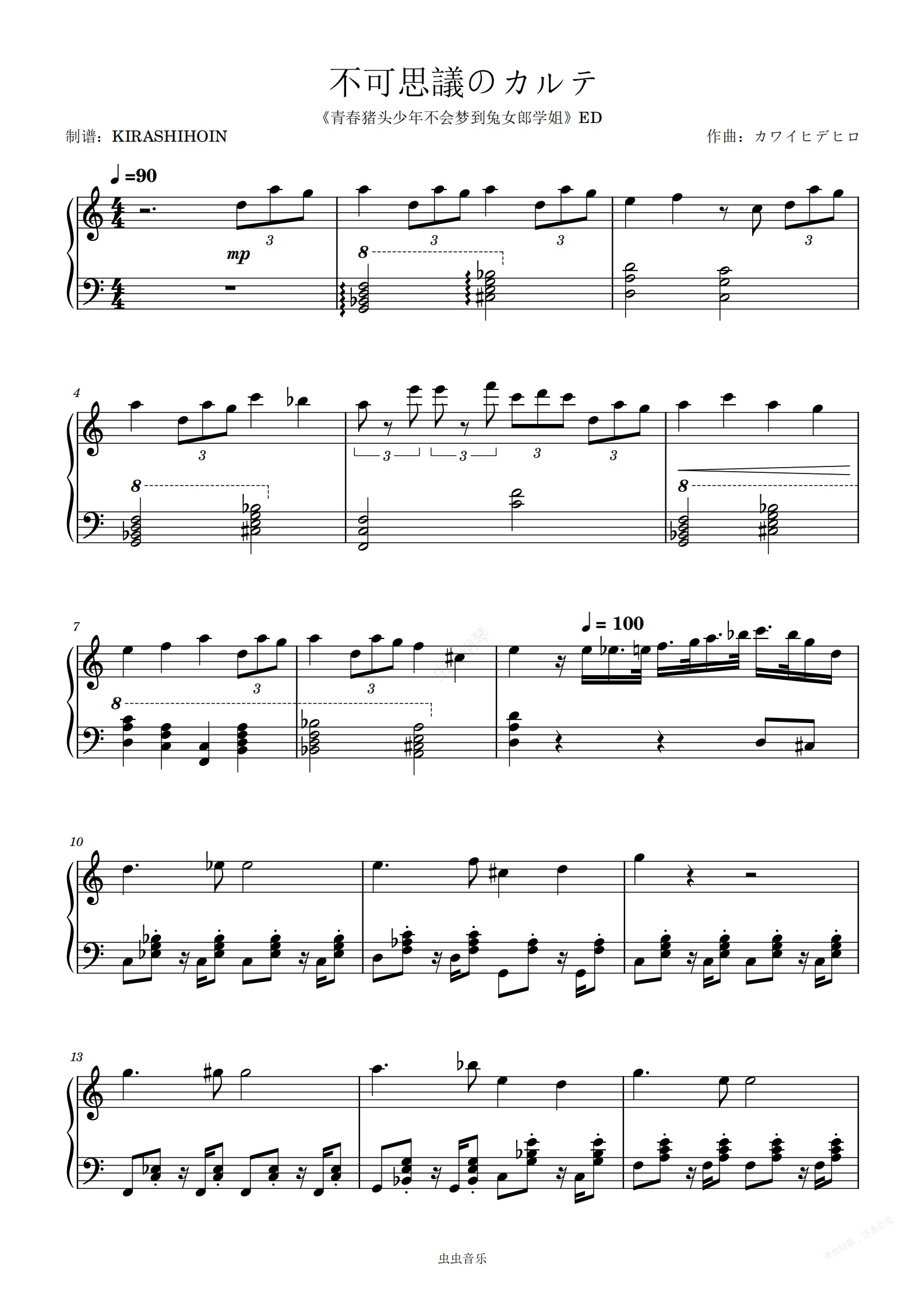 钢琴谱:不可思议的病历/不可思議のカルテ(《青春猪头少年不会梦到兔女郎学姐》ED)
