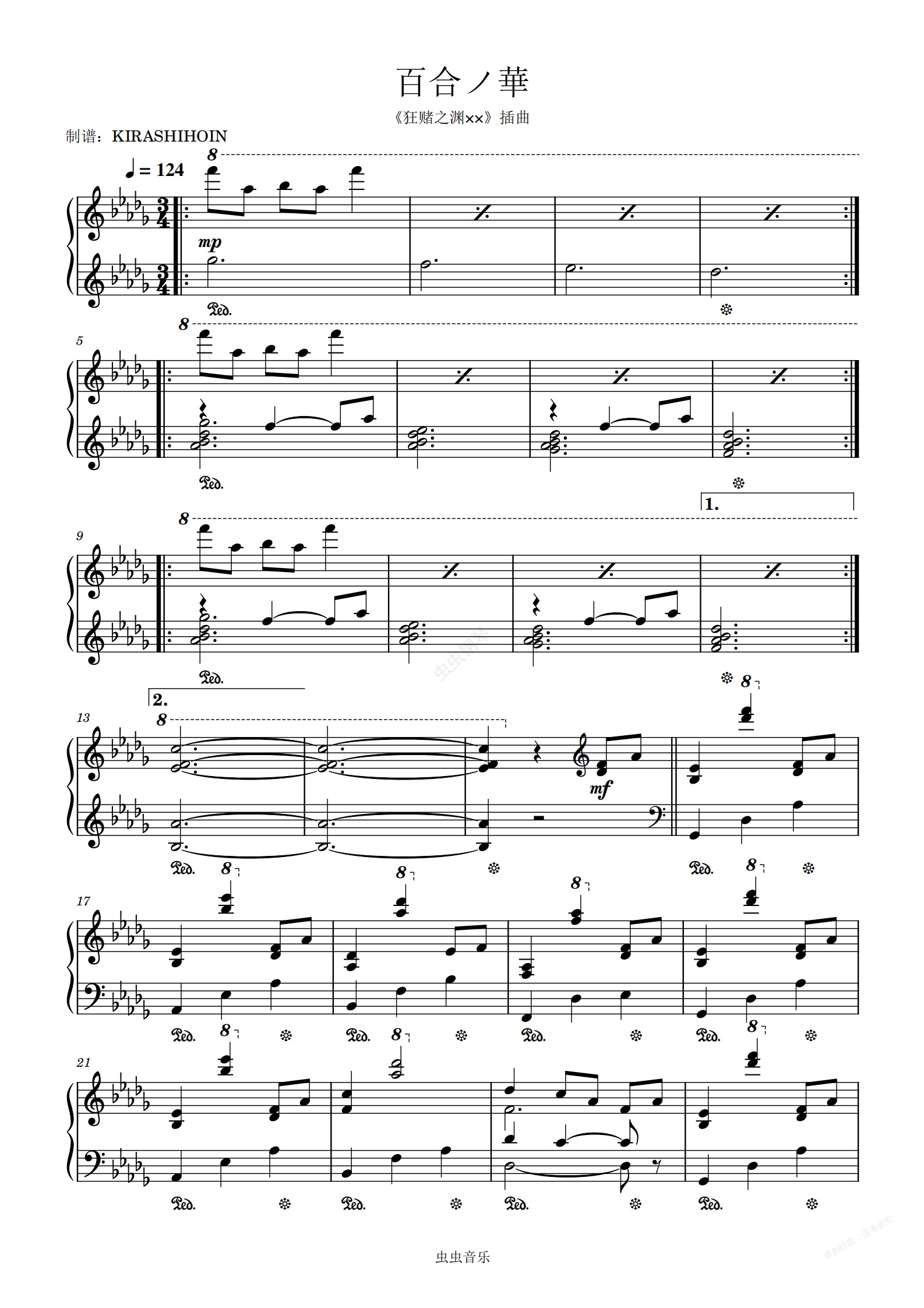 钢琴谱:百合ノ華(《狂赌之渊××》插曲)