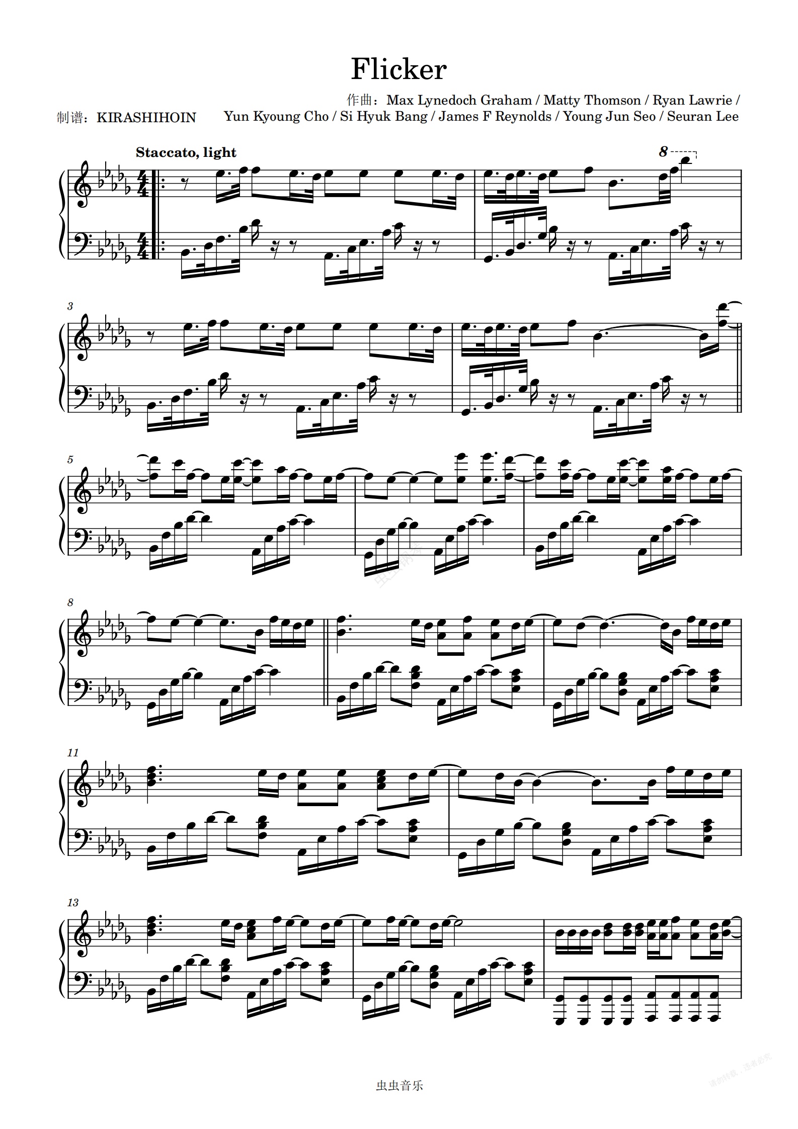 钢琴谱:Flicker