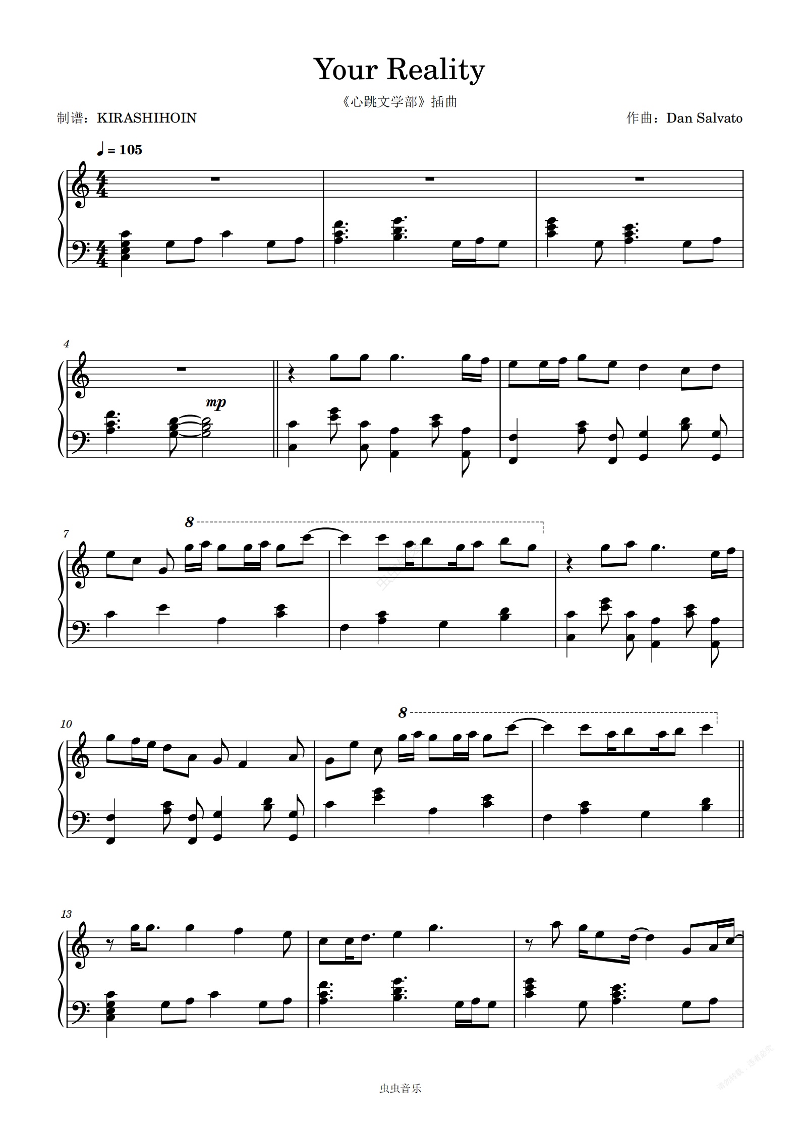 钢琴谱:Your Reality(《心跳文学部》插曲)