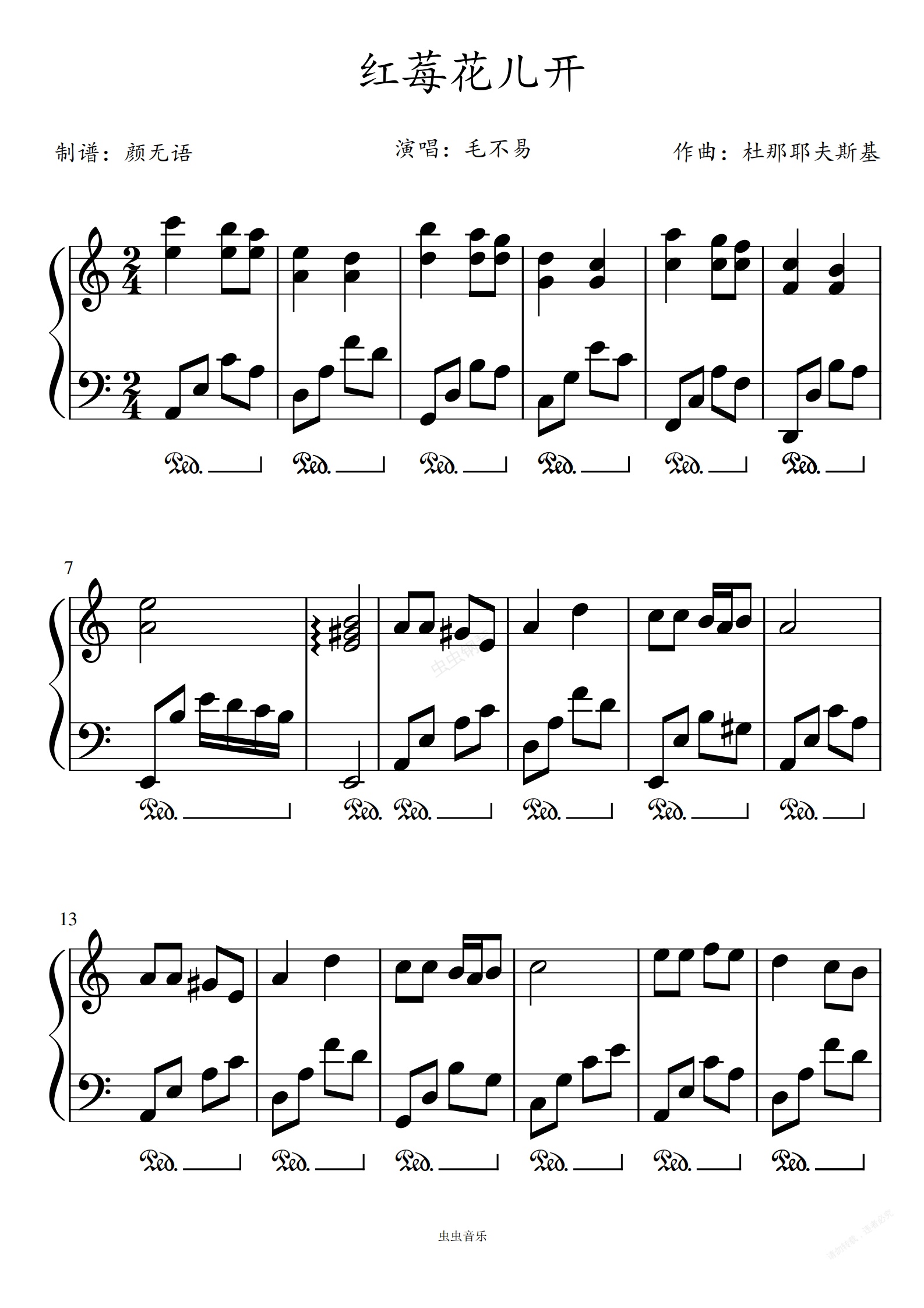 钢琴谱:红莓花儿开 毛不易 C调