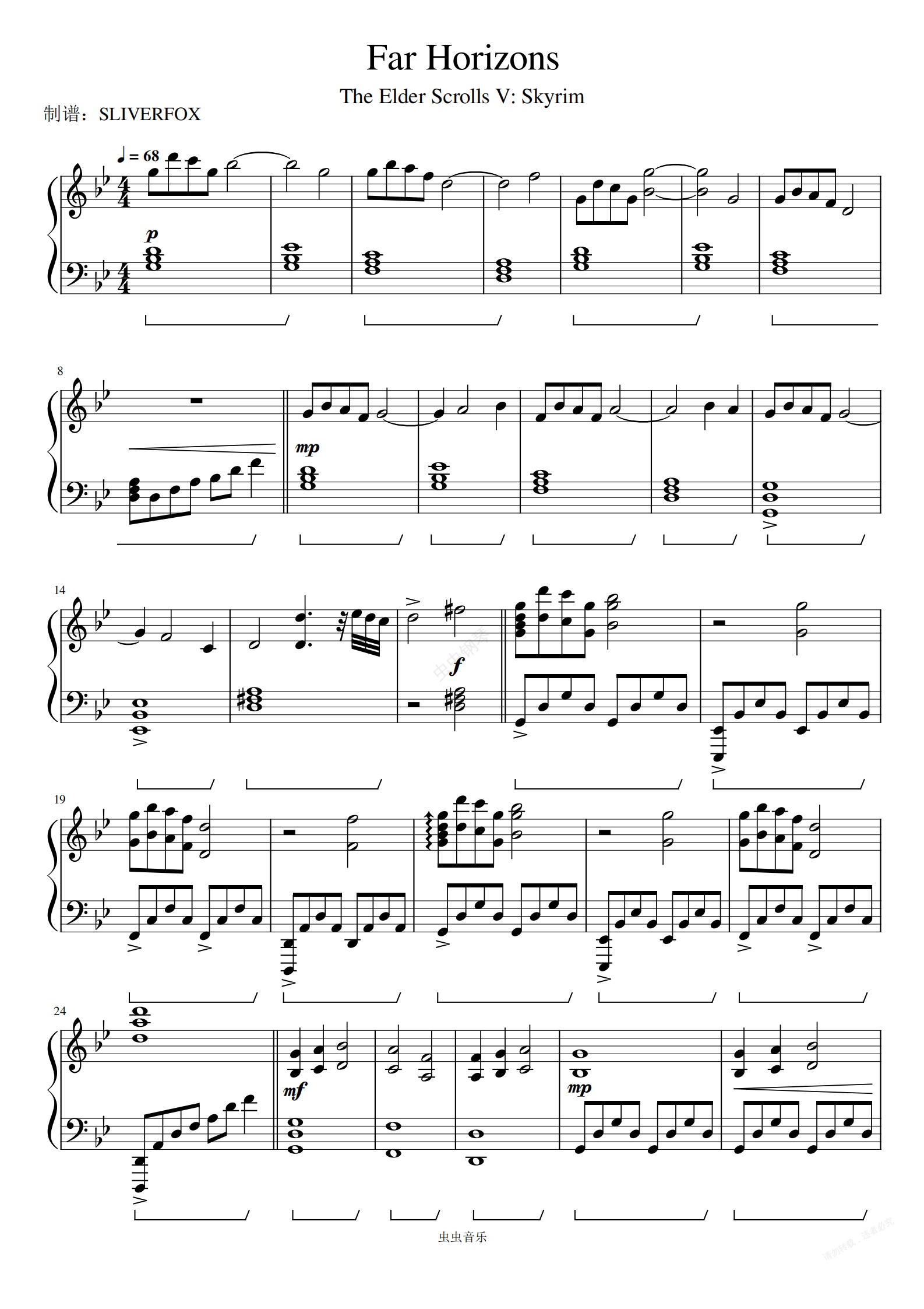 钢琴谱:老滚5天际背景音乐 《Far Horizons》简版