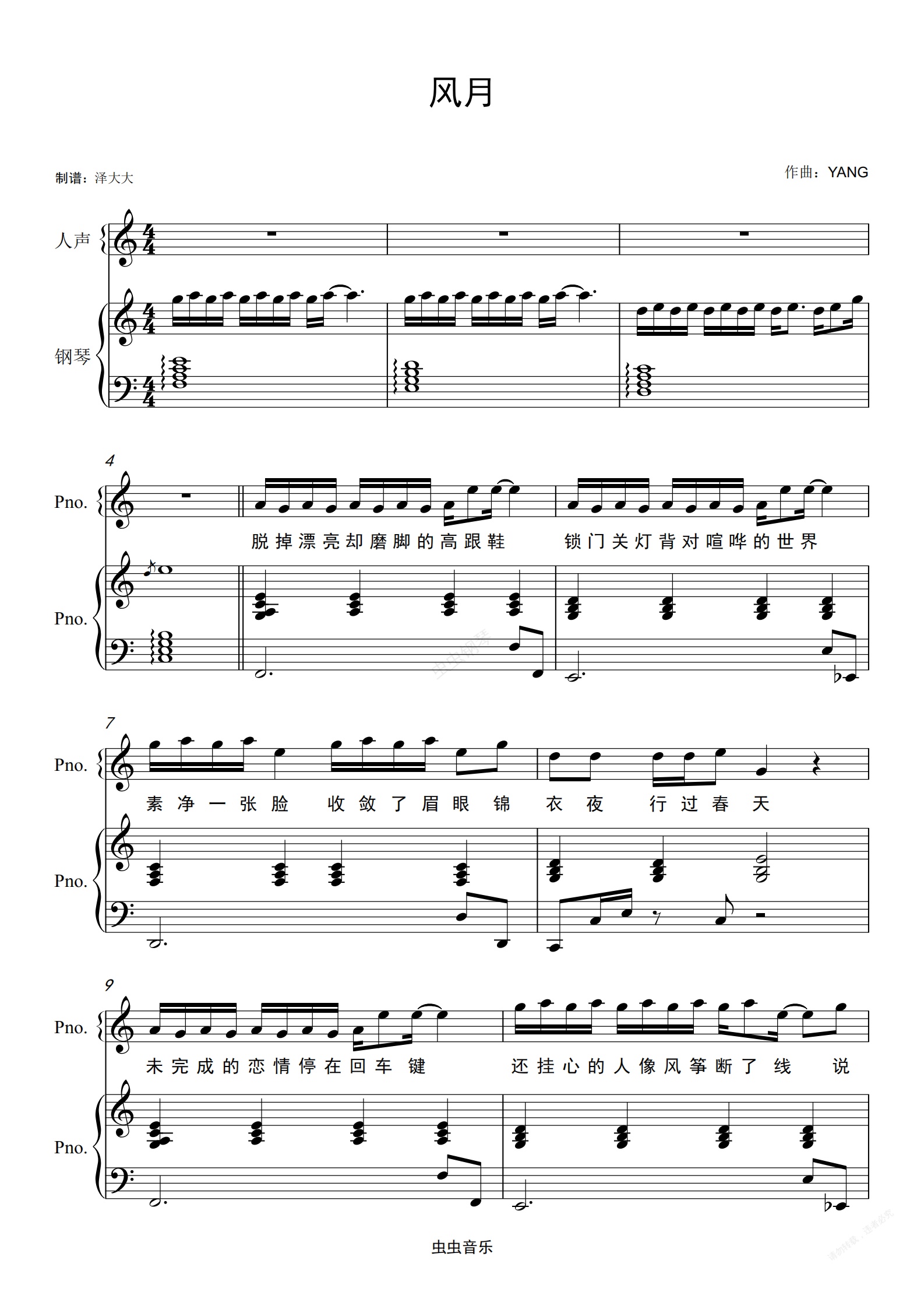 钢琴谱:风月【完美伴奏附词】泽大大 黄龄
