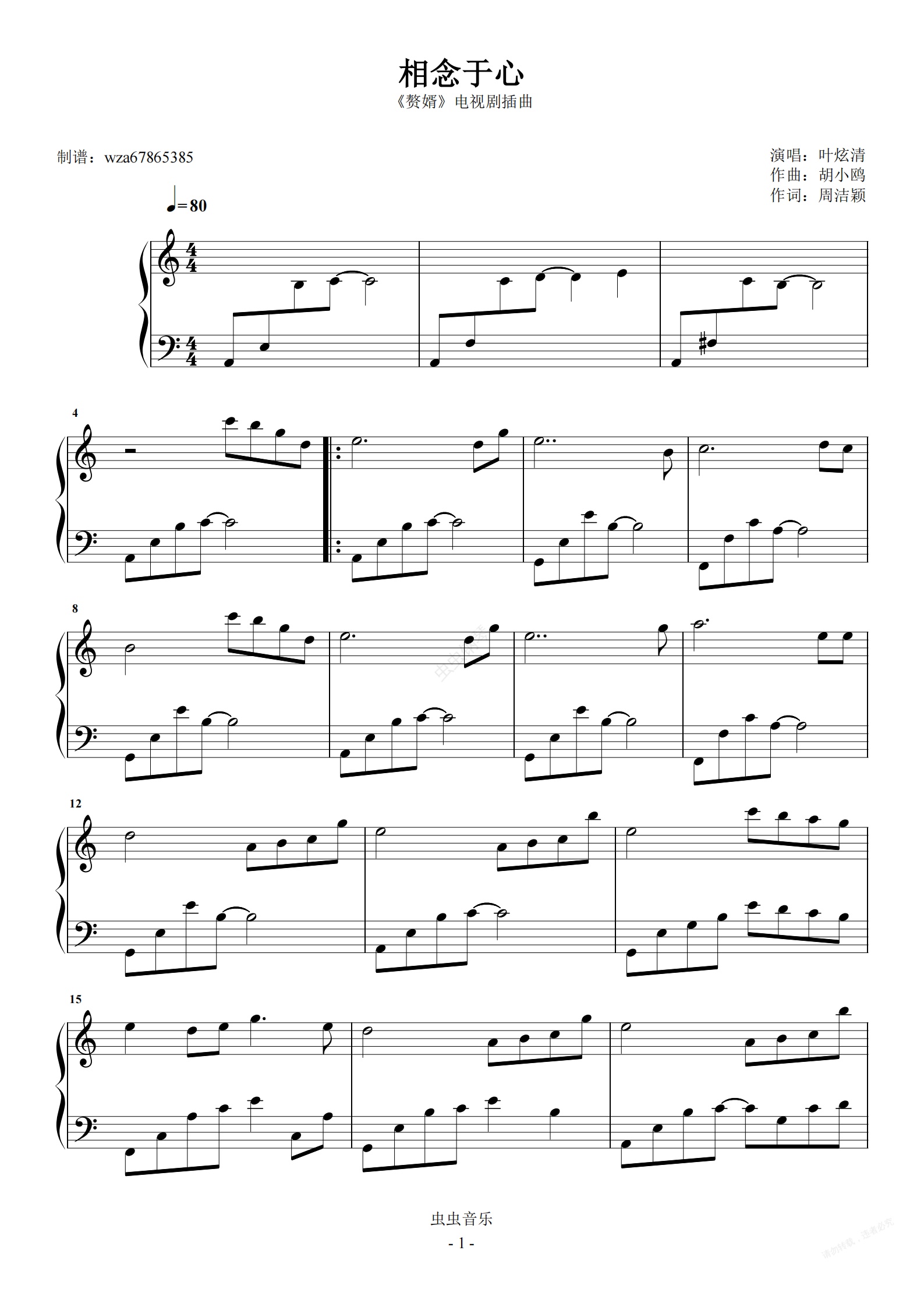 钢琴谱:相念于心