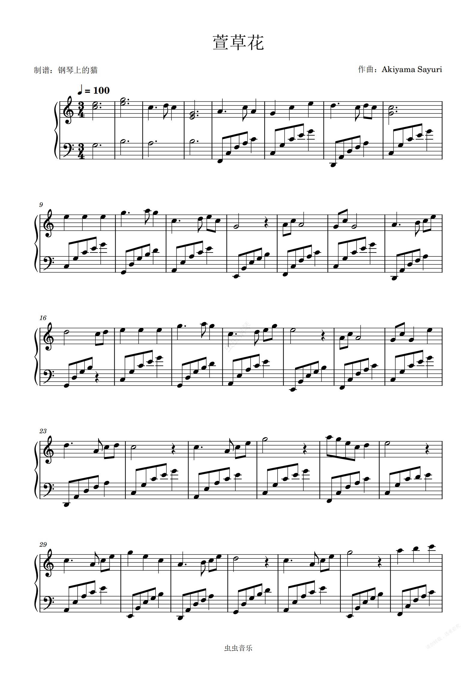 钢琴谱:萱草花 C调简易版 《你好,李焕英》主题曲