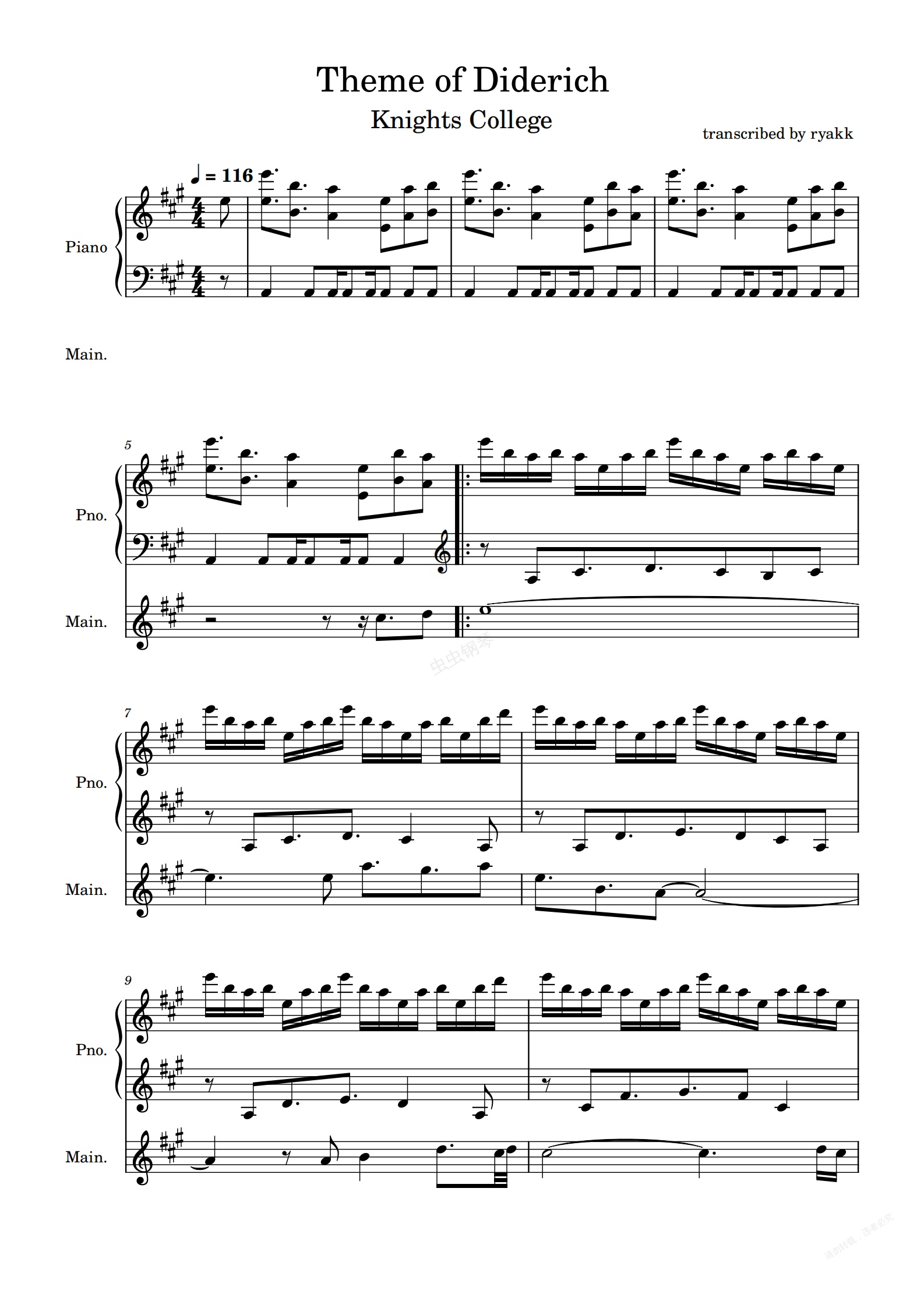 钢琴谱:Theme of Diderich - Knights College