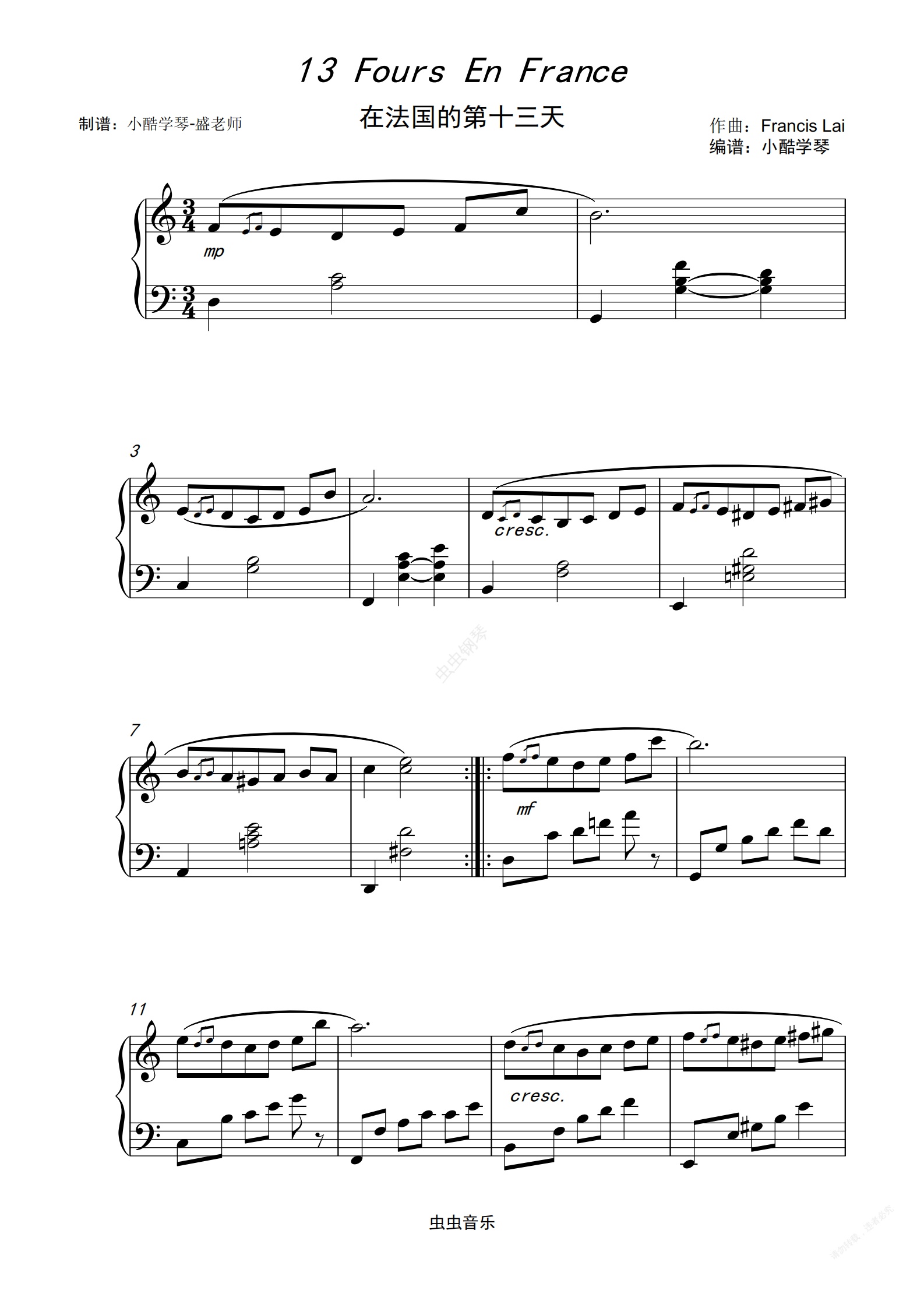 • 《在法国的十三天》a小调唯美手版(带演奏视频+钢琴原声录制)