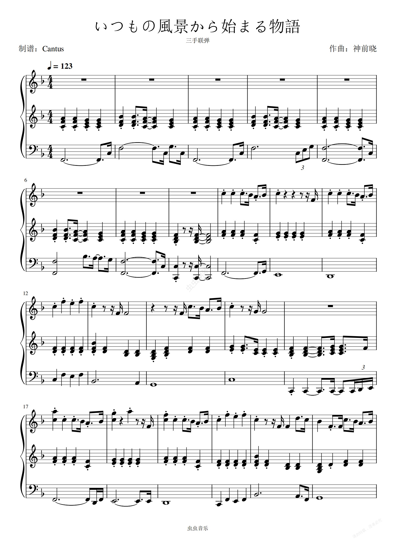 钢琴谱:いつもの風景から始まる物語/从老风景开始的故事-凉宫春日的消