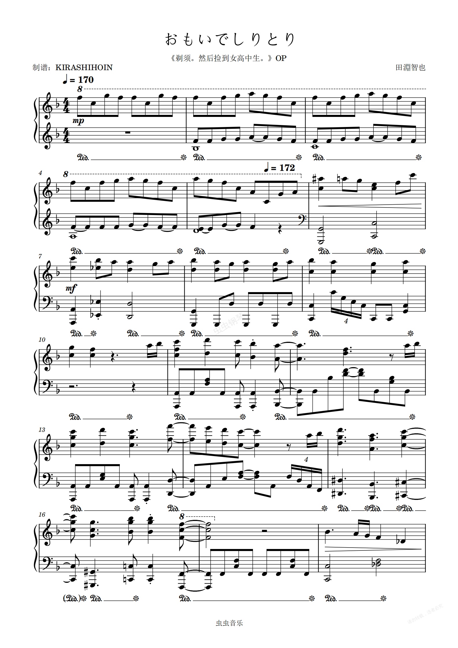 钢琴谱:おもいでしりとり(《剃须。然后捡到女高中生。》OP)[F调]