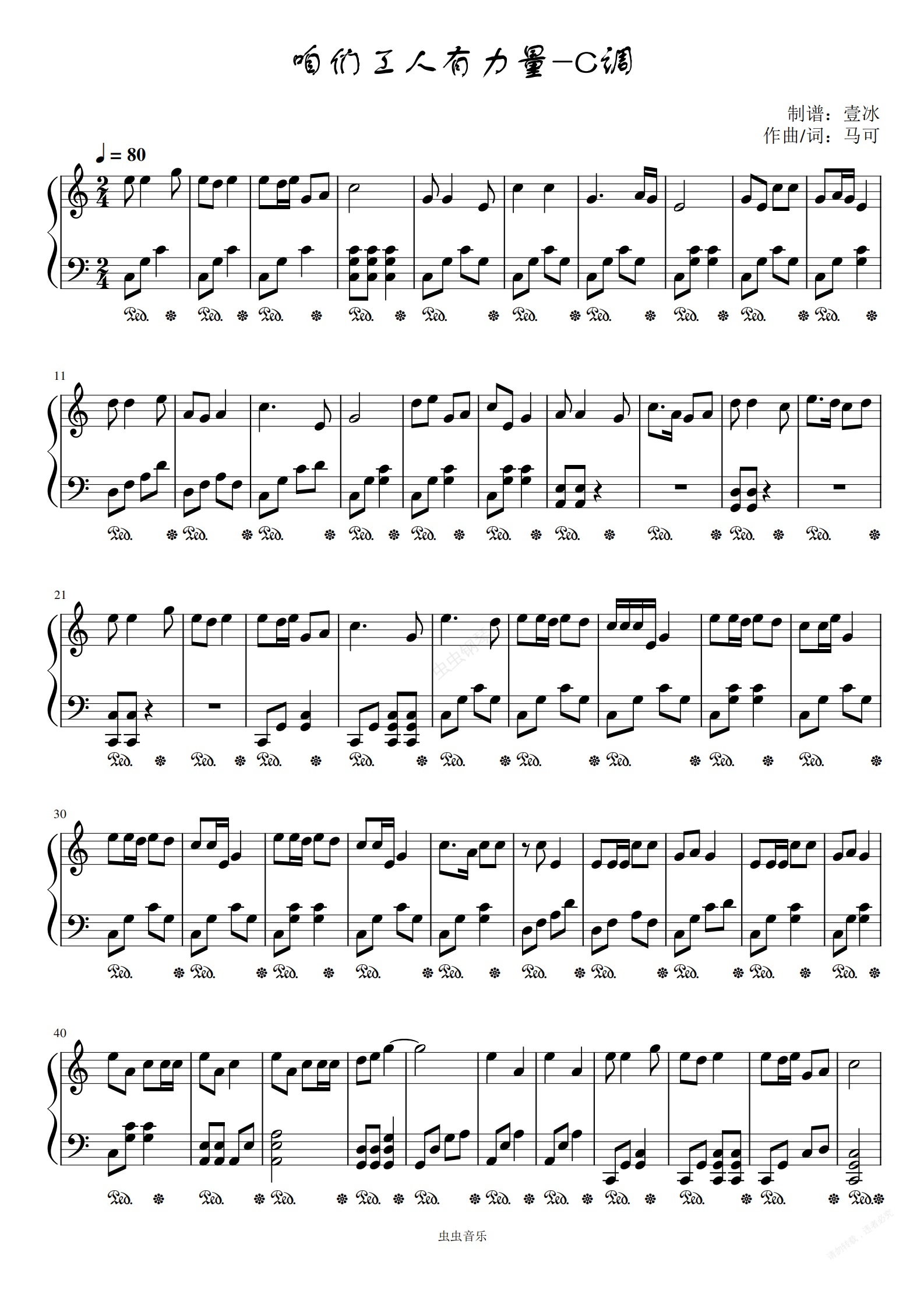 钢琴谱:咱们工人有力量-C调简单易上手