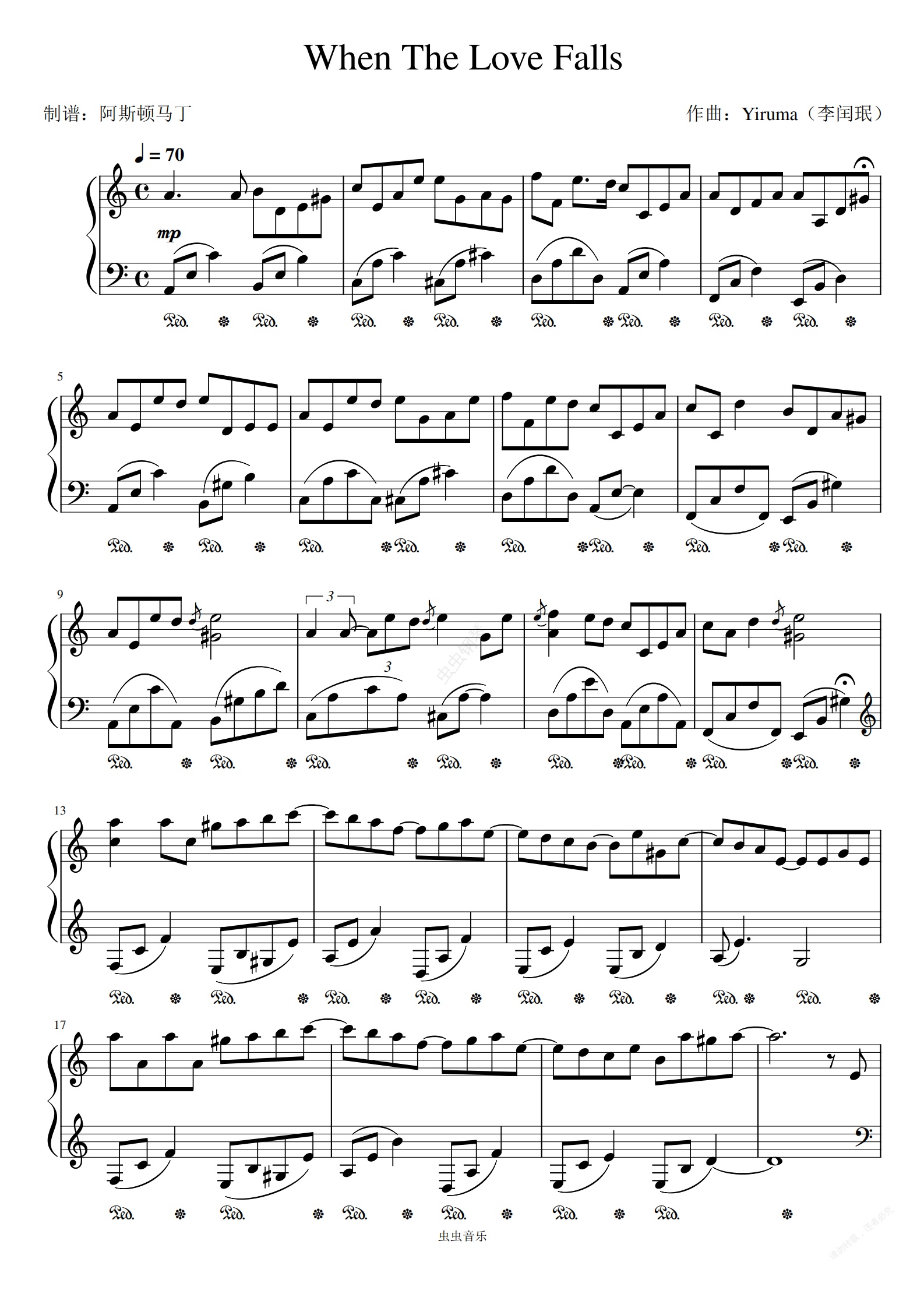 钢琴谱:李闰珉-《When The Love Falls》