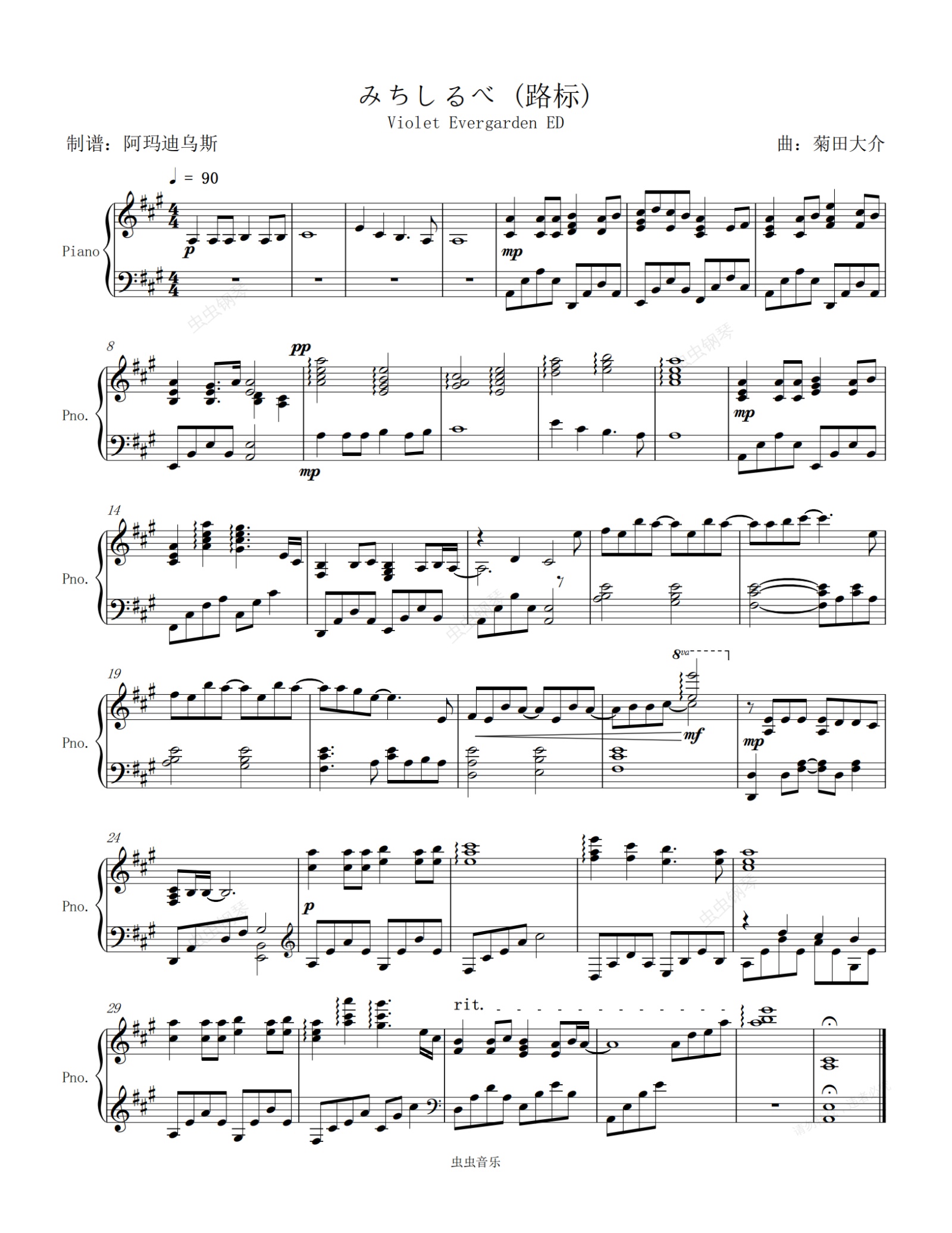 钢琴谱:紫罗兰永恒花园 ED < みちしるべ > (路标) 原调高还原完整版本
