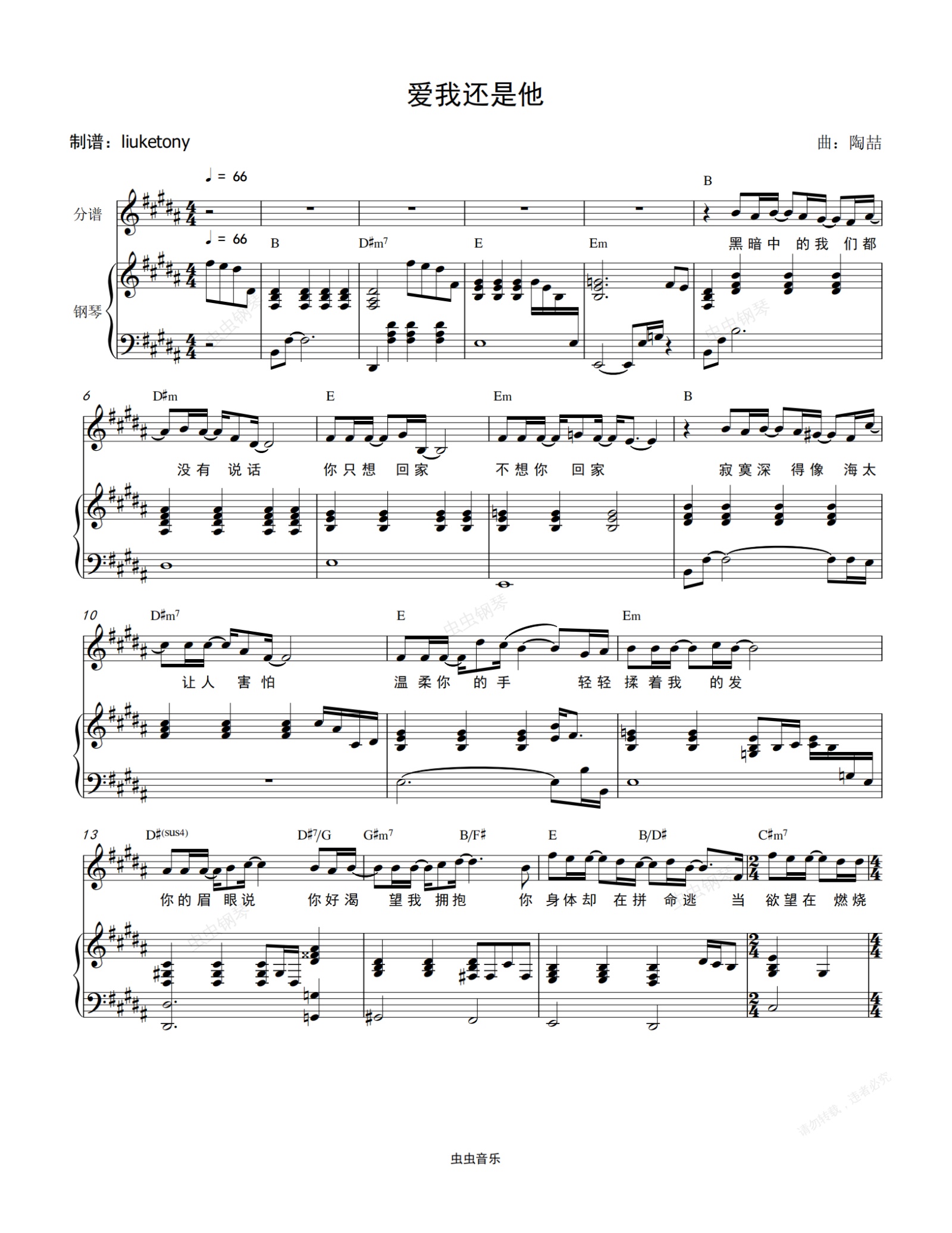钢琴谱:爱我还是他 - 钢琴伴奏谱 原调