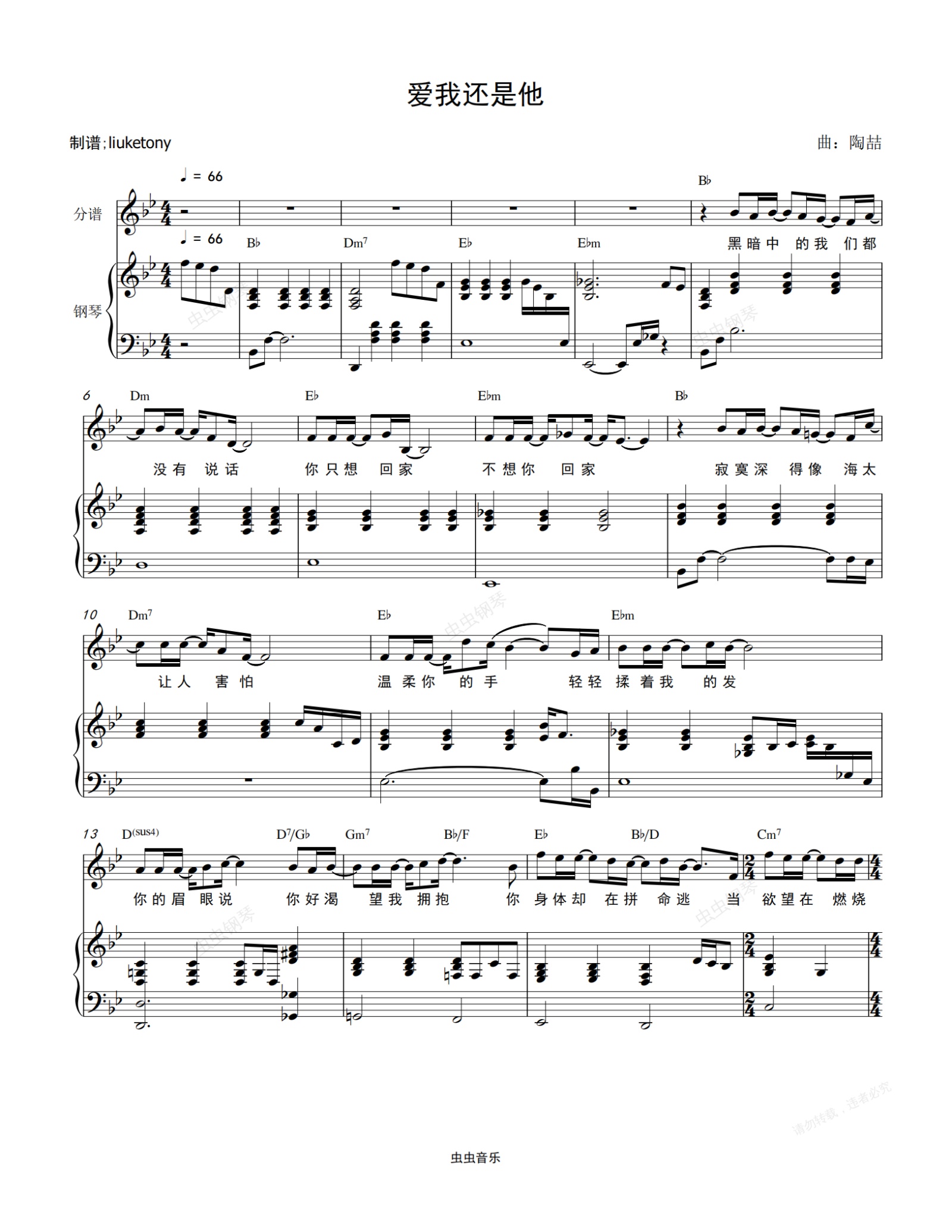 钢琴谱:爱我还是他 - 钢琴伴奏谱 bB调