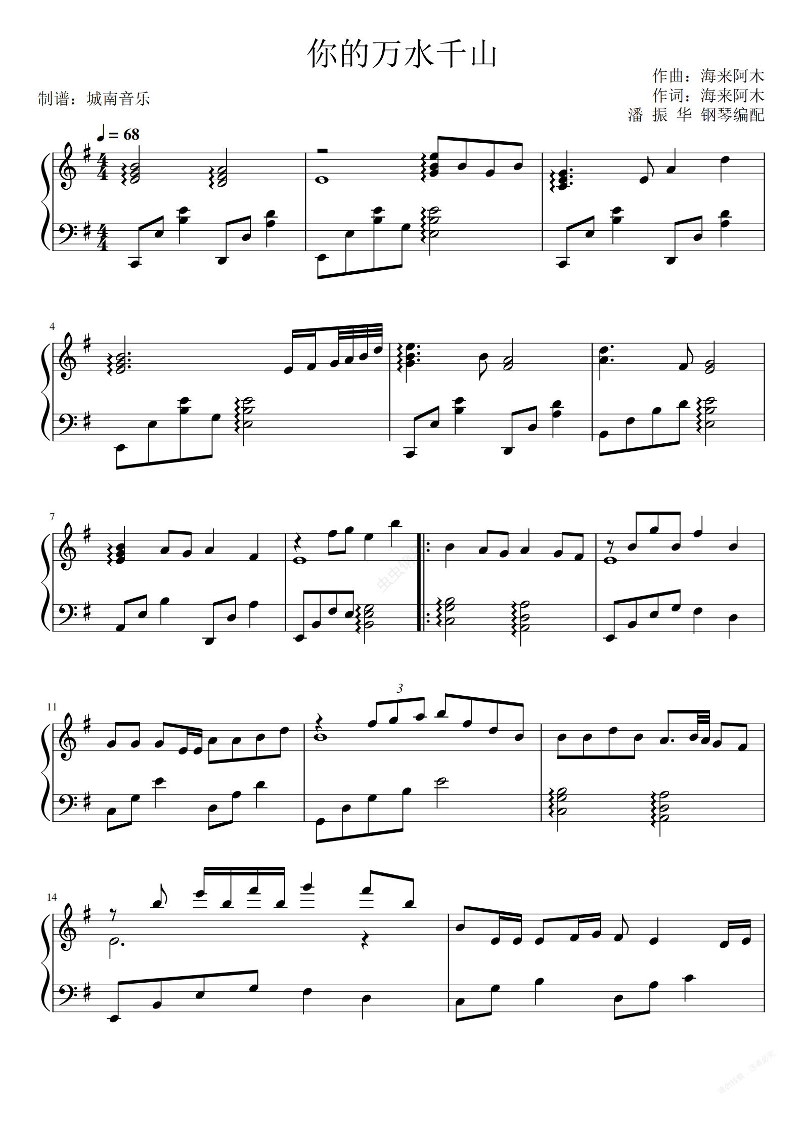 钢琴谱:你的万水千山 钢琴独奏