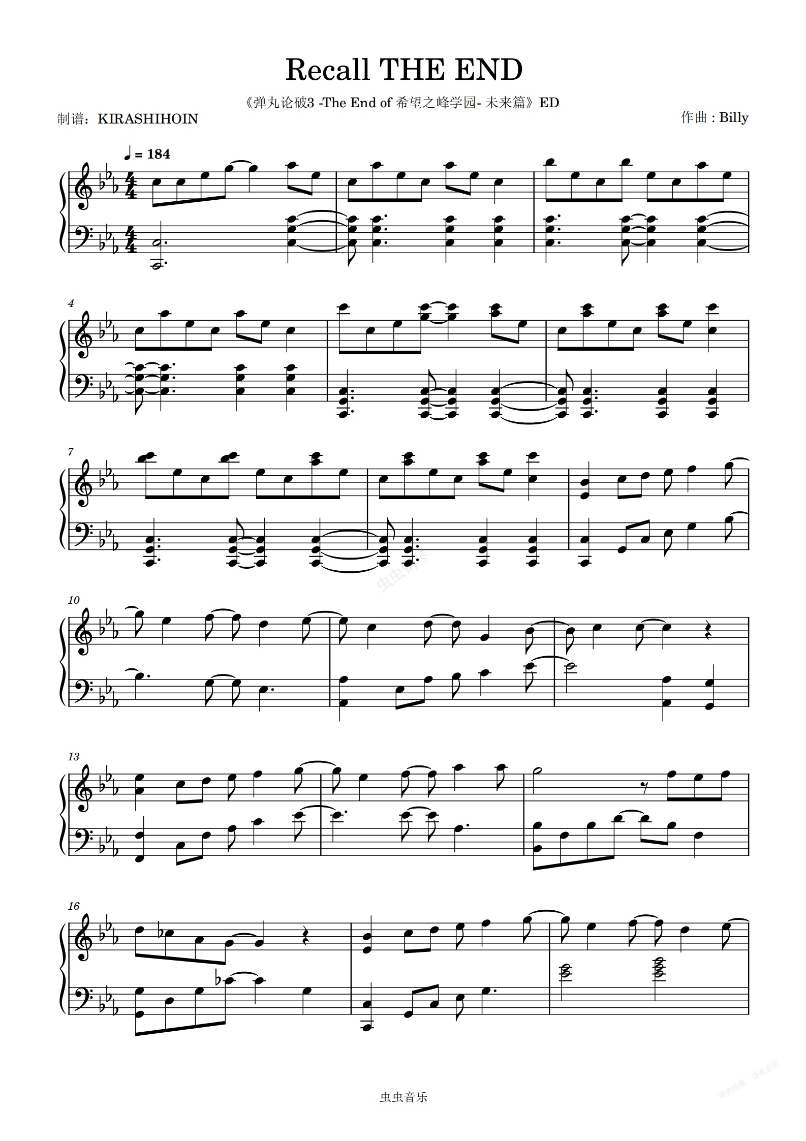 钢琴谱:Recall THE END(《弹丸论破3 -The End of 希望之峰学园- 未来篇》ED)