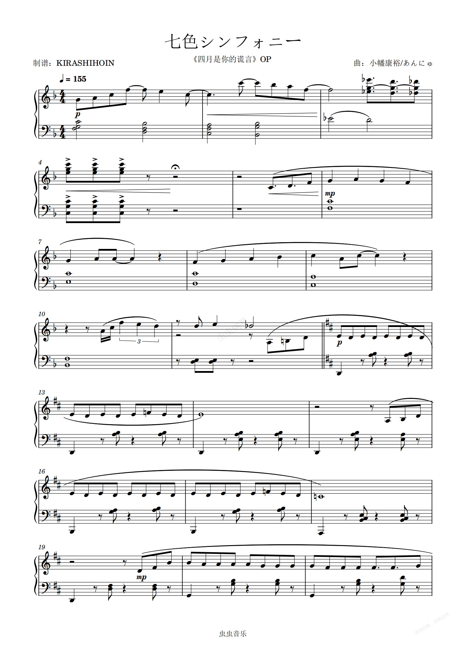 钢琴谱:七色交响曲/七色シンフォニー(《四月是你的谎言》OP)