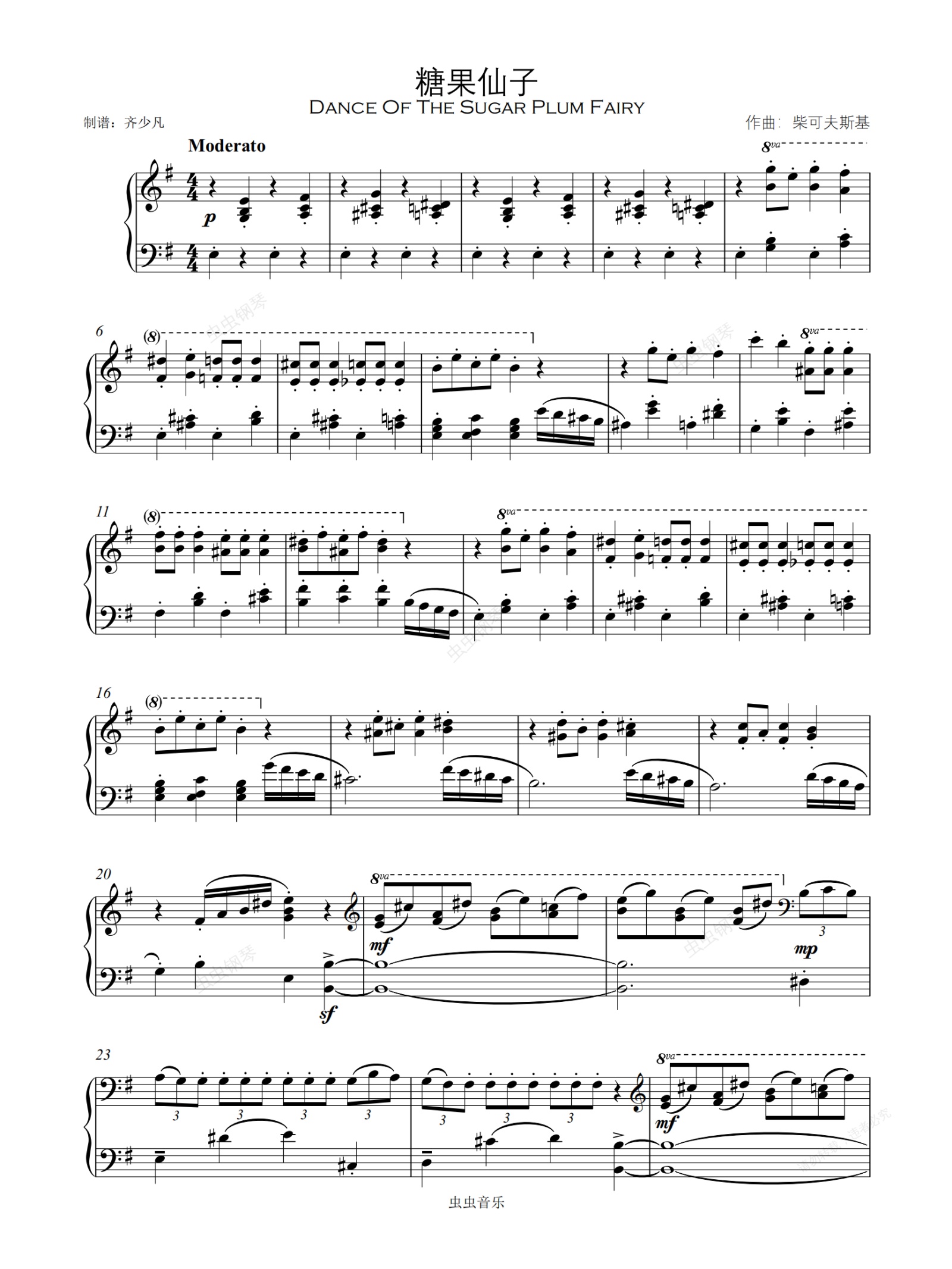 《糖果仙子舞曲》是一首具有梦幻、奇妙色彩的乐曲,乐曲不长,ABA段式 由柴可夫斯基作曲的芭蕾舞剧《胡桃夹子》 由柴可夫斯基作曲的芭蕾舞剧《胡桃夹子》 。主旋律是钢片琴的清脆的声音,一下一下节奏感很强,好像小木偶一动一动的样子,在B段有明显的强音出现,音乐变得急促、紧张,在B段最后一句则是一连串快速的类似风铃般的声音,好像一位仙子出场,接着又反复A段。